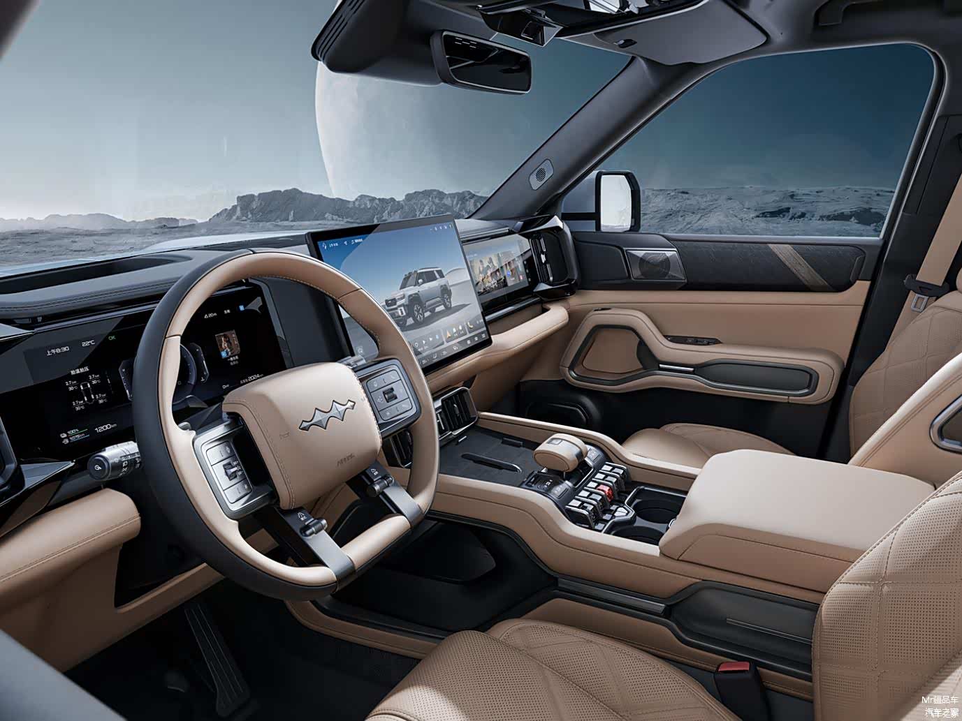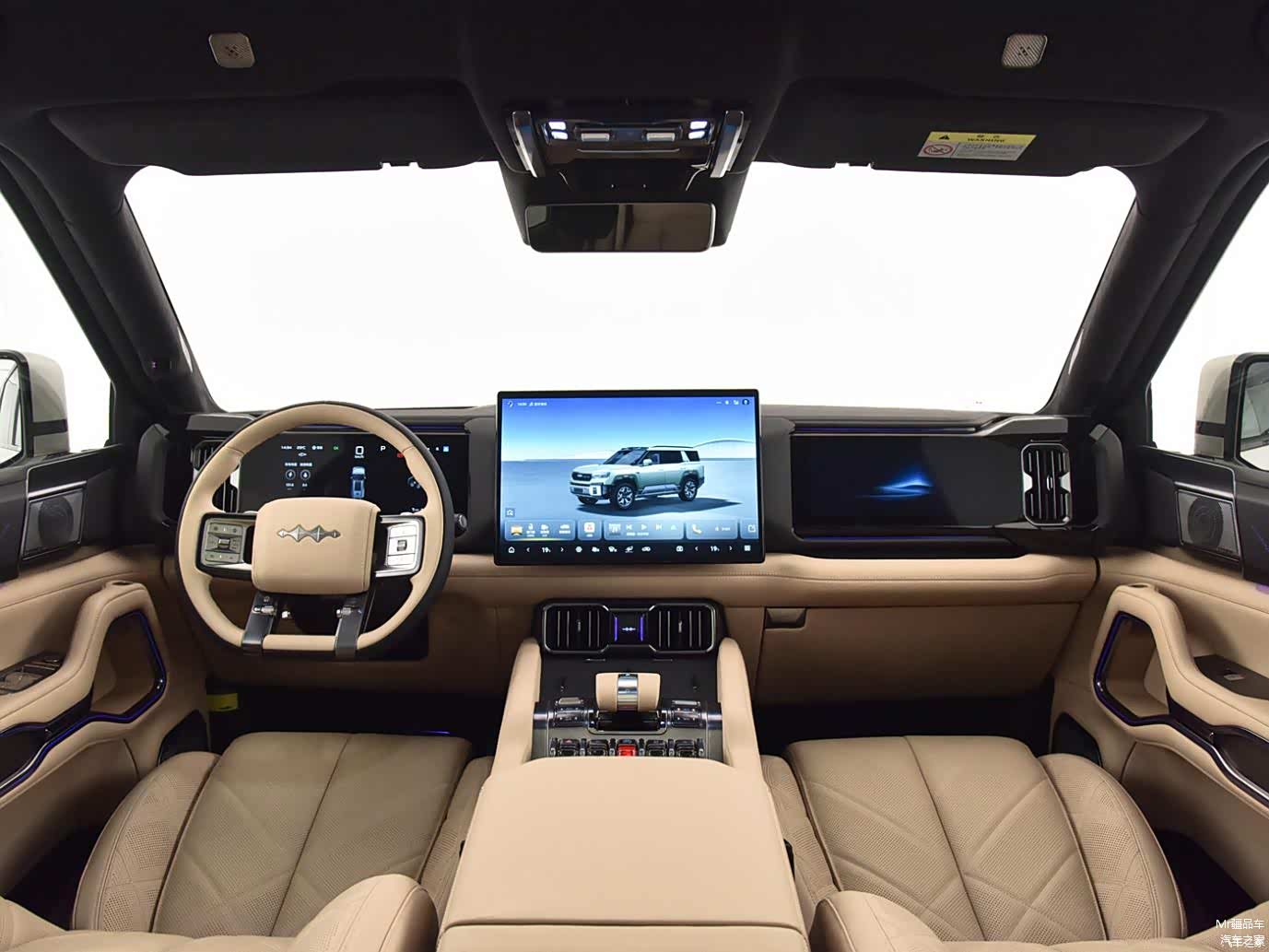 新车基于 2.0T DMO 超级混动越野平台打造,搭载由 2.0T 发动机 + 双电机组成的插电式混动力系统。系统综合功率高达 550 千瓦,零百加速时间仅需 4.8 秒。还配备了云辇 -P 系统,悬架行程可调范围达 140 毫米,加上最大 900 毫米的涉水深度以及智能差速锁,赋予了它强悍的越野能力。同时,能利用摄像头和激光雷达,提前感知路况变化,进行阻尼自适应调节,提升舒适度。