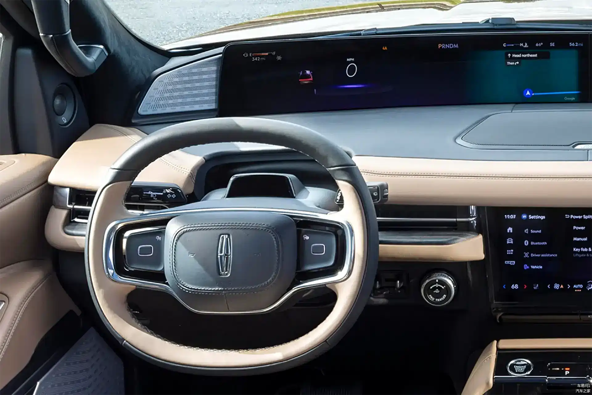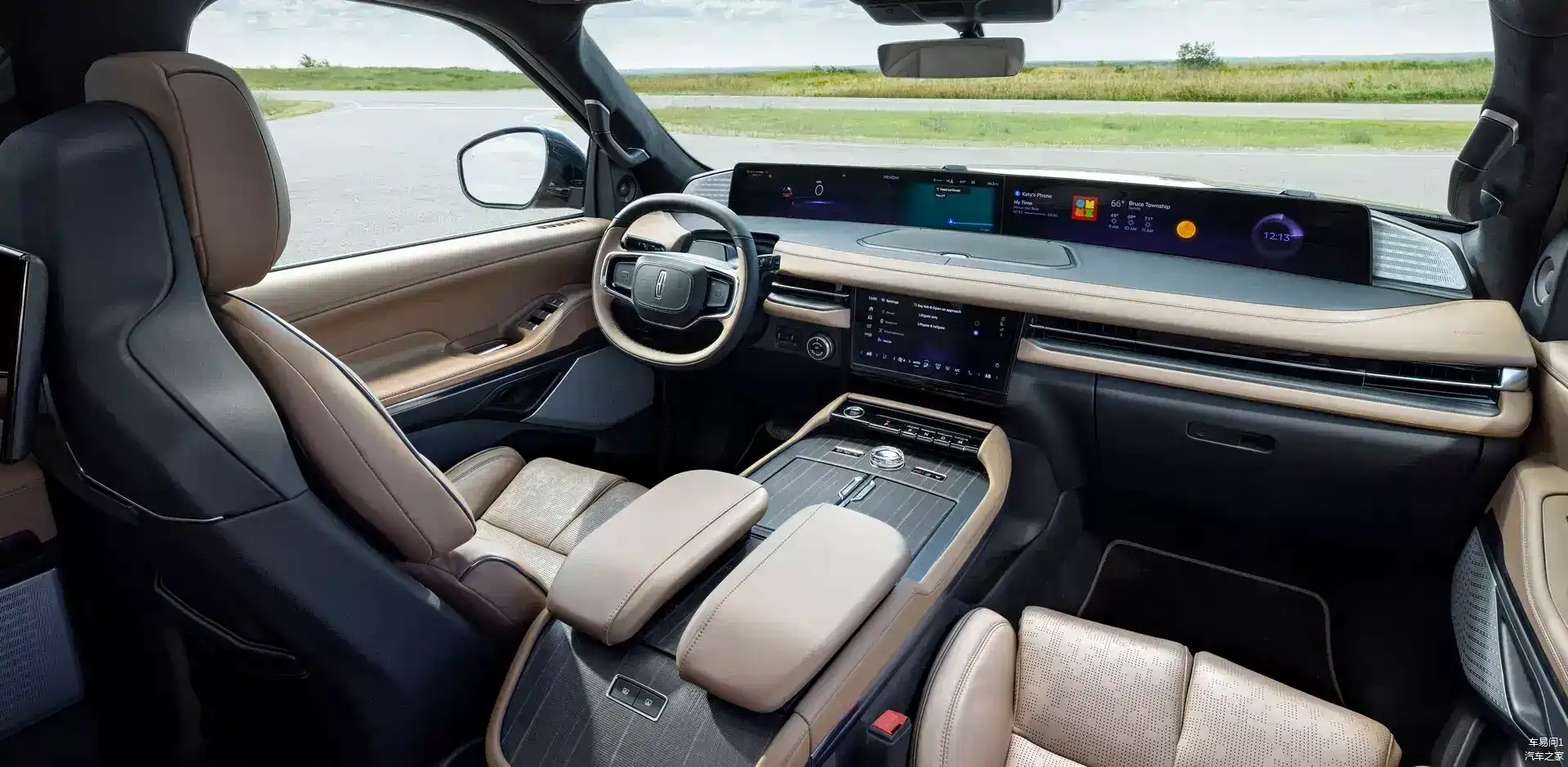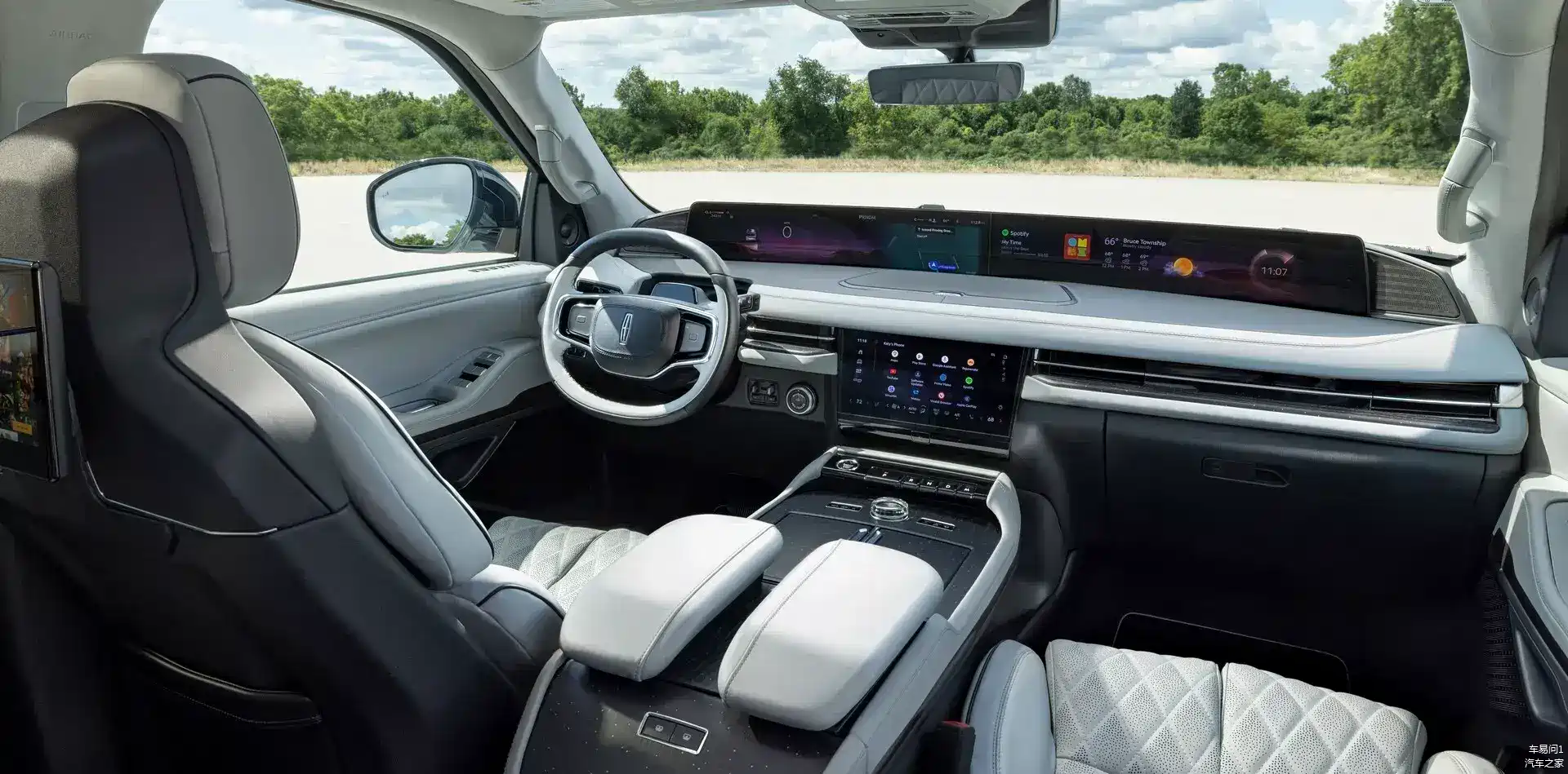 领航员的驾驶舱可以说是焕然一新,我们在这里见到了林肯的进取心,它除了有双辐式触控方向盘、实木装饰板材以及大量真皮材料外,更在前风挡底端提供了远端布局的48英寸数字带鱼屏,这块屏幕横跨了整个中控台,将会提供包括信息显示、远端交互、娱乐支持在内的多样智能交互功能;而为了让交互控制更容易,除了方向盘触控外,它会在贯穿出风之间布局一块触控屏,既可用于带鱼屏的操作,也能进行更便捷的常用功能快捷调整。