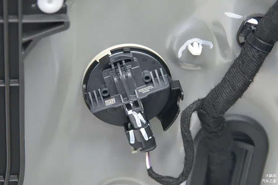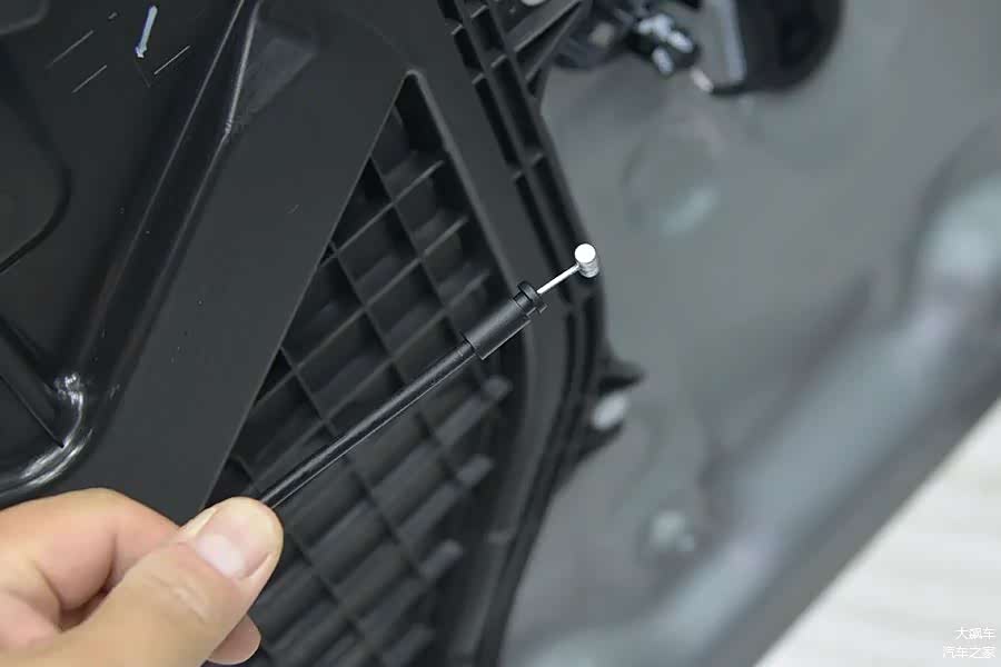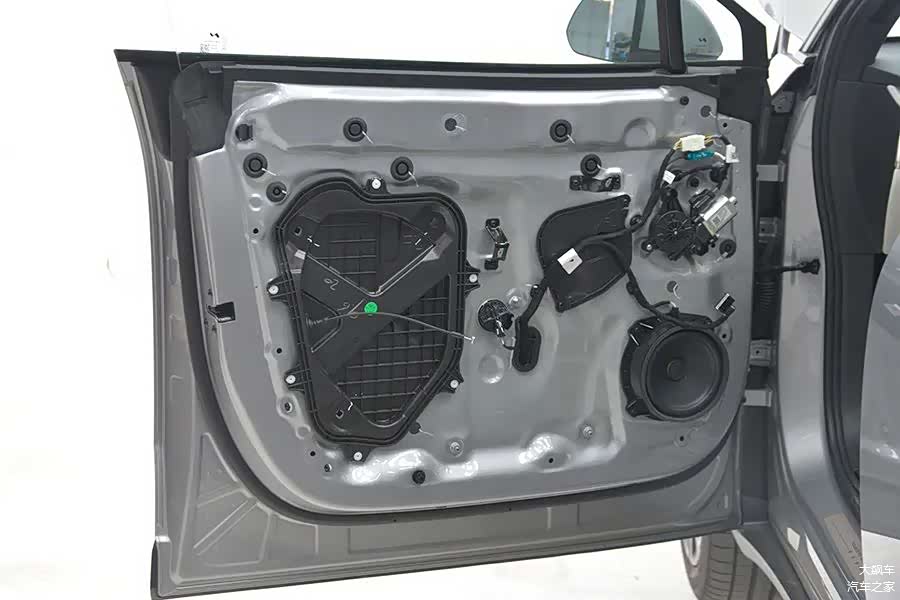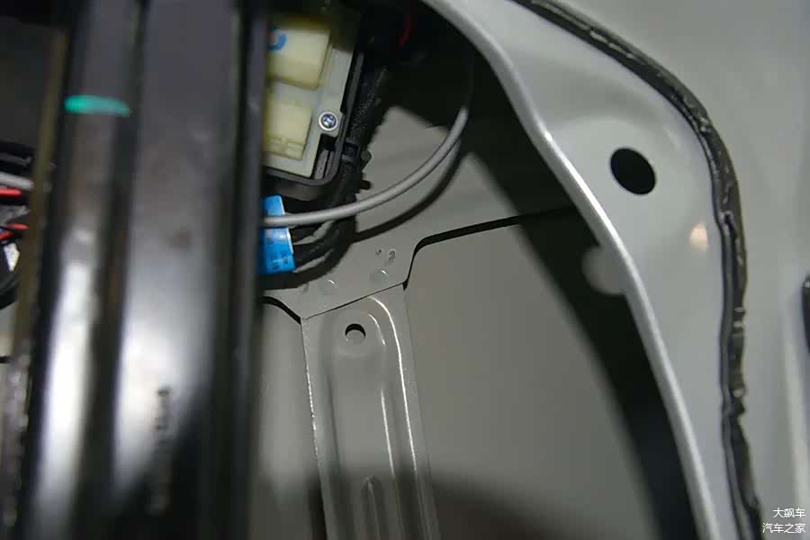 拆掉车门内饰板,能看到内部由大面积钢板覆盖,预留了检修口,使用硬塑料板密封。
