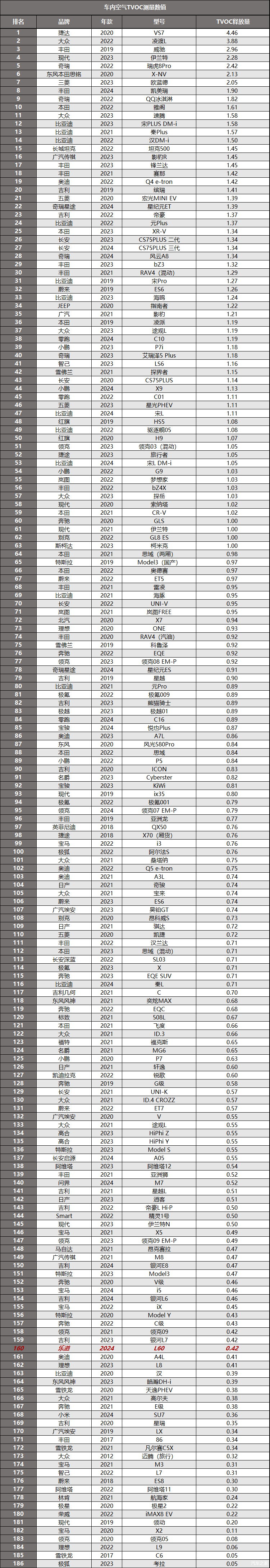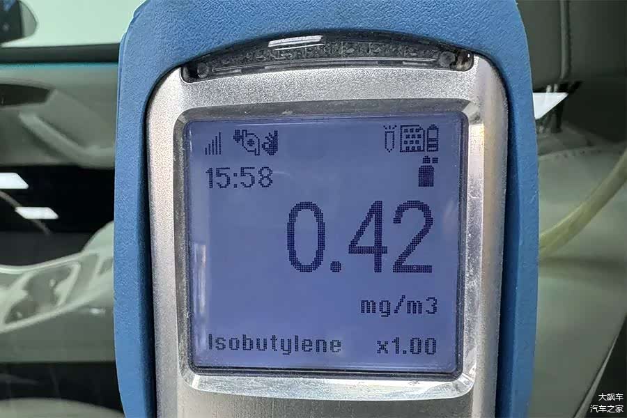 经过在23±1℃恒温环境中16小时的封闭,这辆车的车内空气TVOC释放量测量数值为0.42毫克每立方米。