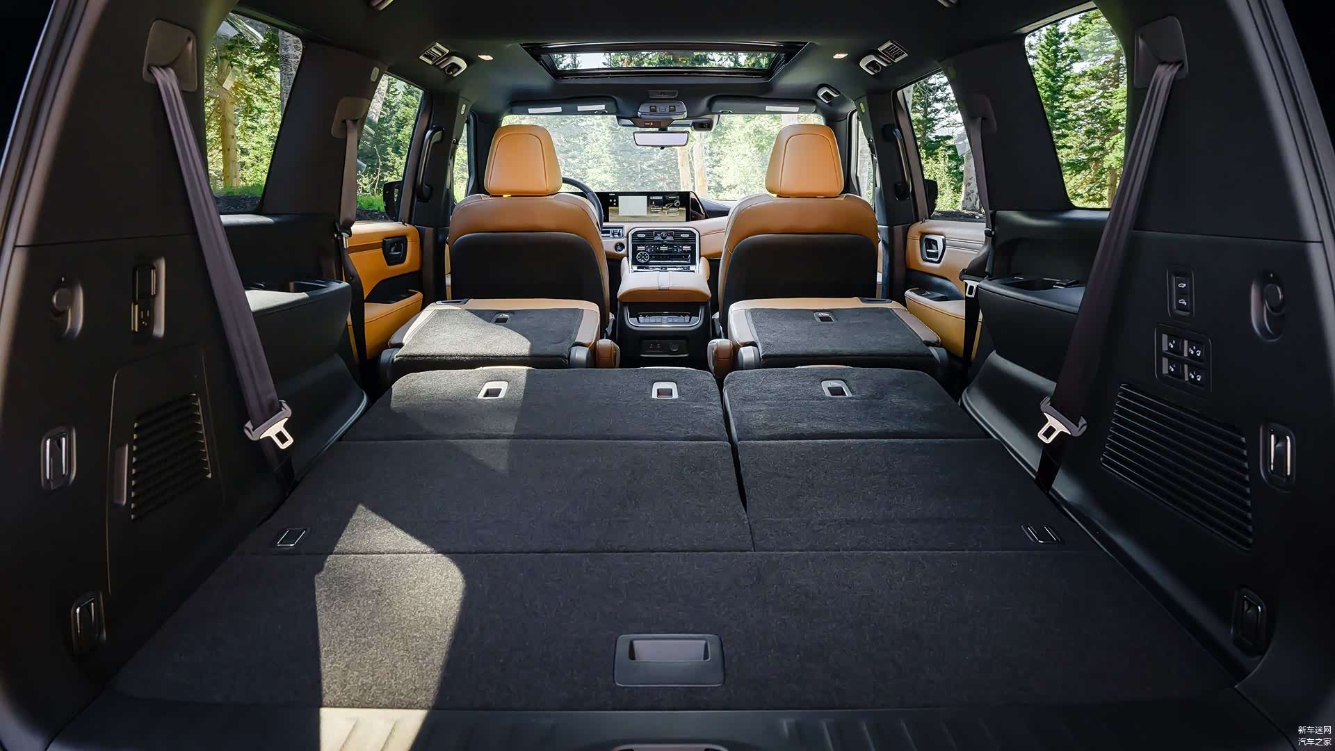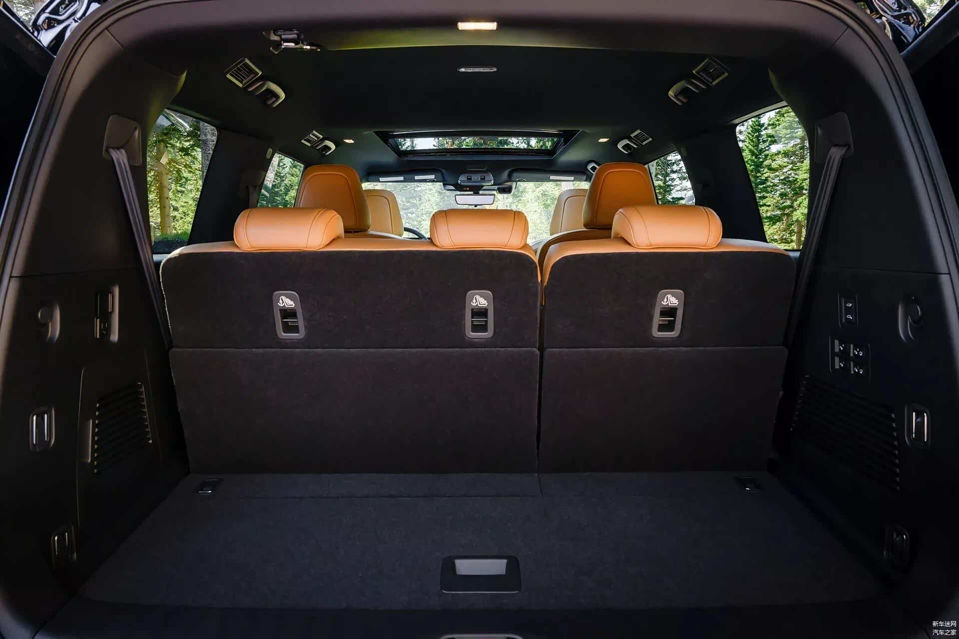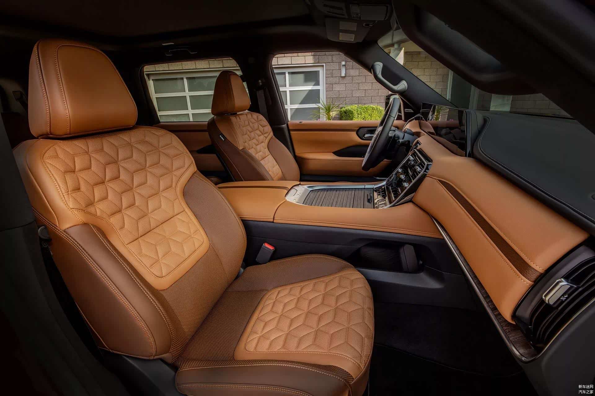 车内采用高级材质,包括绗缝皮革内饰,开孔木材装饰,前排配备12向电动调节座椅,支持加热、冷却或按摩功能。消费者还可以选择40/20/40折叠式三排座位或第二排船长座椅。前排腿部空间增加了4.2英寸,在通常很拥挤的第三排,腿部空间增加了5.7英寸。