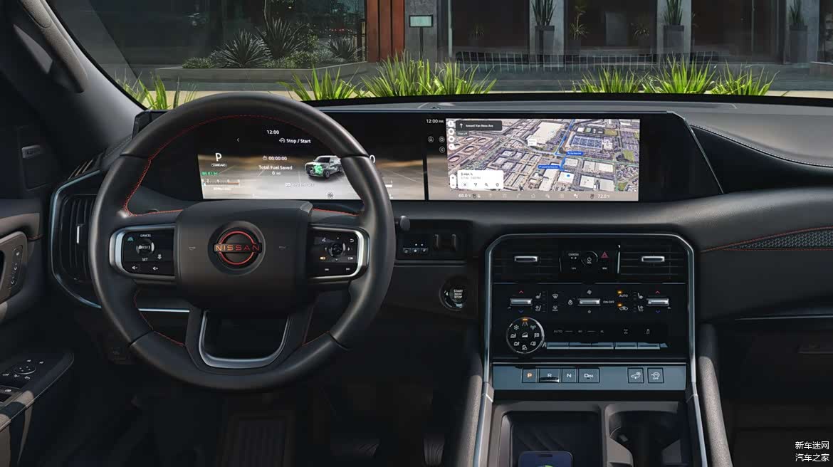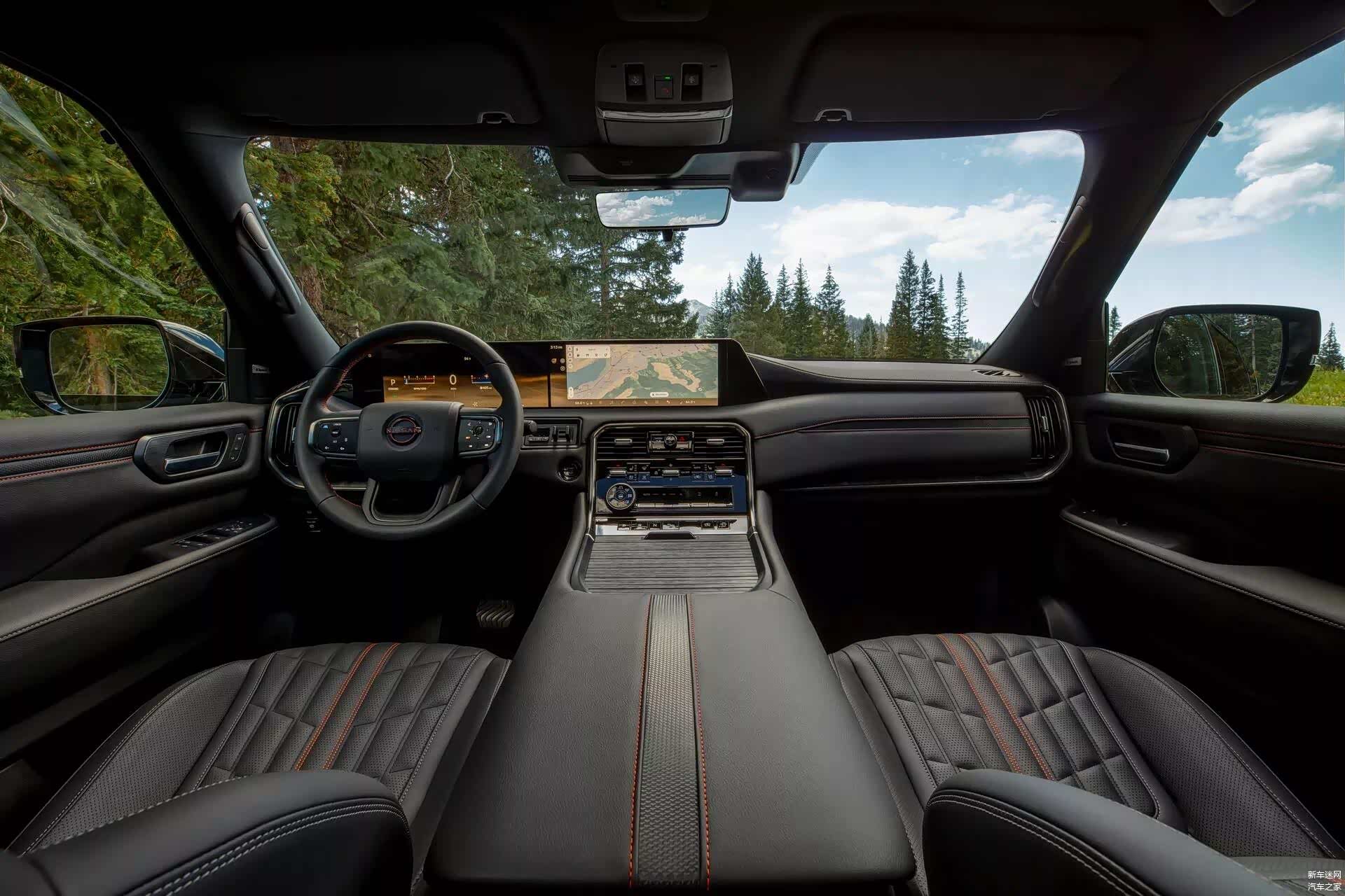 内饰方面,2025款日产Armada标配双12.3英寸显示屏(中控屏和仪表盘),铂金和Pro-4X版本配备双14.3英寸屏幕。