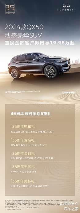 秉承“致情致盛 完美体验”的服务理念,英菲尼迪将客户关怀由“车”延伸至“人”,特别推出“35周年限时感恩礼遇”大礼包,以至臻诚意助力用户实现优雅生活。