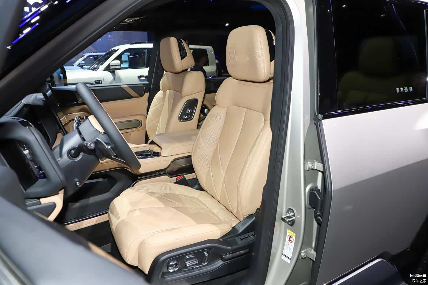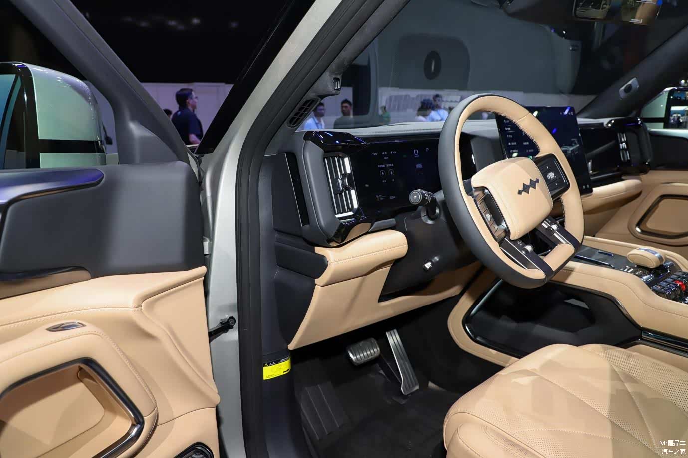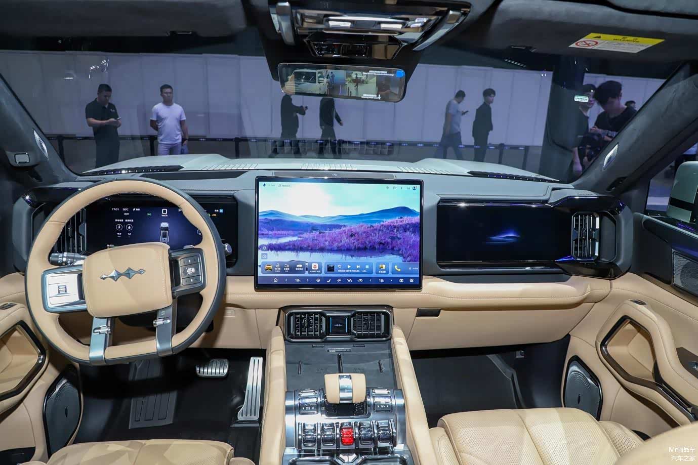 内饰方面:方程豹豹 8 的内饰设计很,中控台简洁大方,线条硬朗,给人一种强烈的科技感。车内配备了三块大屏幕,包括 17.3 英寸的中央控制屏、12.3 英寸副驾多媒体屏以及 12.3 英寸全液晶仪表盘,多屏联动的设计让信息显示更加丰富,操作也更加便捷。
