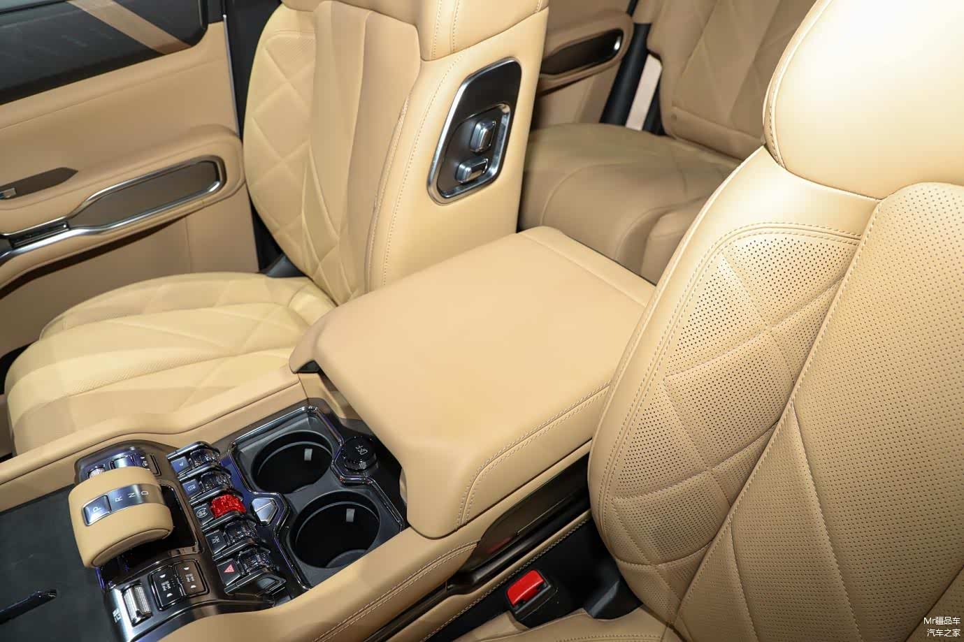 副仪表台配有豹 5 同款可升降换挡杆以及水晶样式实体按键,独特的设计不仅美观,还增加了操作的趣味性。升降挡把在启动和换挡时带来独特的仪式感除此之外,中央扶手箱后方还配备了两块独立触控屏,可以分别控制多媒体和空调系统,进一步提升了车内的科技氛围。