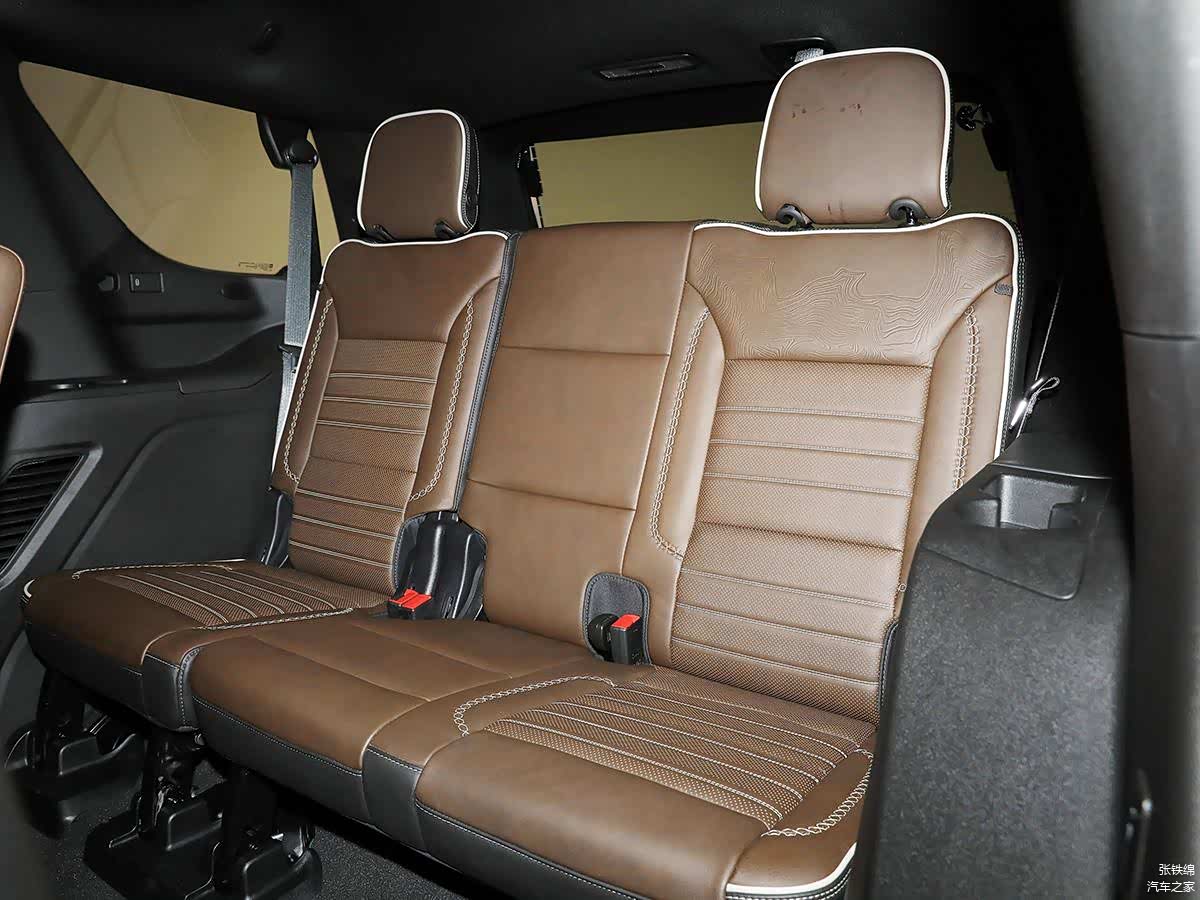 作为一辆全尺寸的大7座SUV,其第三排座椅也有着不错的空间表现,提供了两个可调式的头枕,座椅能够4/6比例折叠。