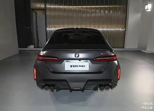 在车尾设计方面,新款的宝马M5 PHEV尾部采用了左右两侧各自独立的长条形状尾灯组。除此之外,车尾还装配了经过宽体改造的后包围套件,其中包括了大规模扩散器装置以及双边共四出的运动排气系统,从而使得该车尾展现出了显著的个性化和动感特质。