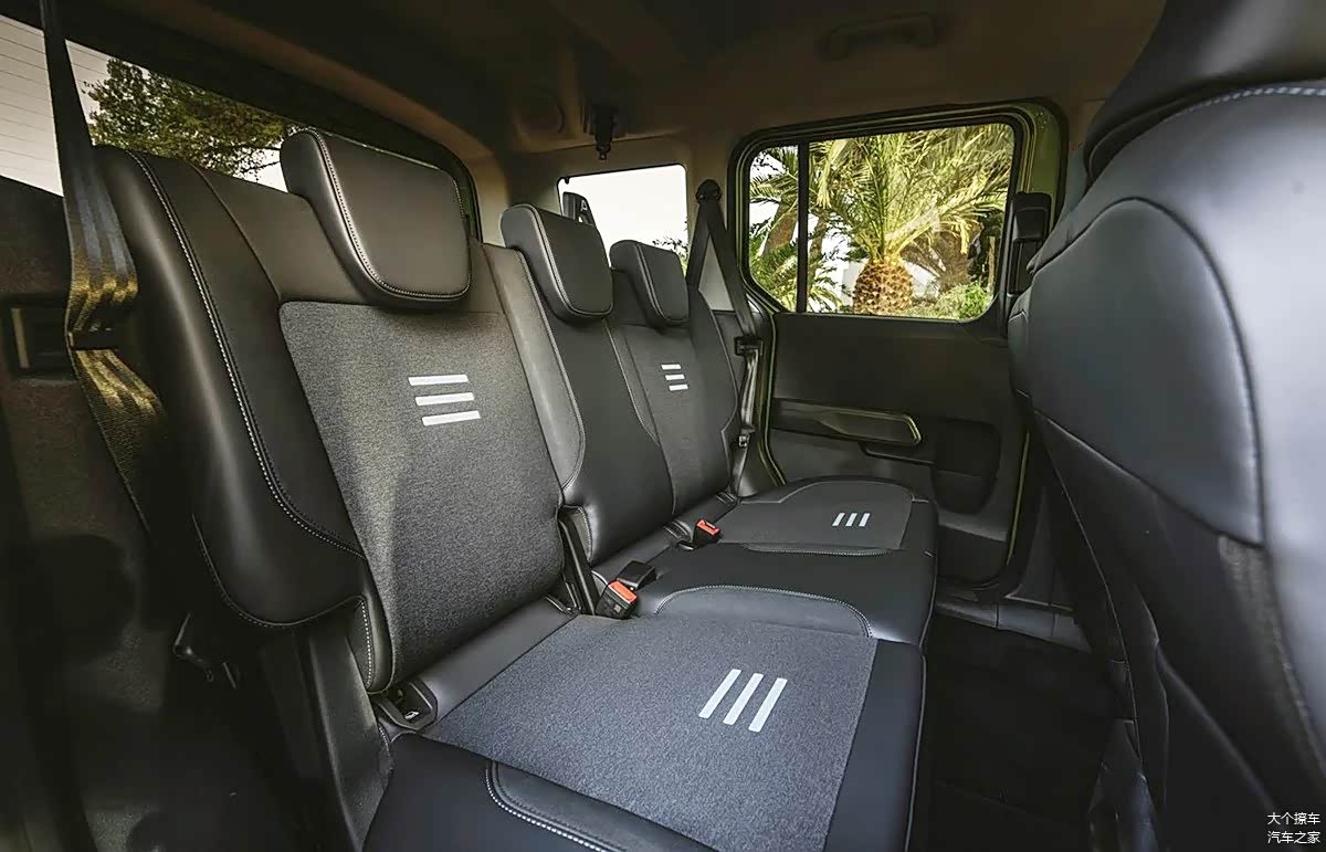 在仪表台下方有一个小按钮,可以显示车辆行驶速度以及里程等信息。这款两幅式的方向盘配备了多功能按键,纯电动版本将采用怀挡式设计,而燃油版本则是传统的位于副中控台区域的机械式档杆。这款新车采用了五个座位的设计,其中第二排的地板非常平滑,而第二排的座椅则配备了三个可调节的头枕。座椅由皮革和布艺材料制成,并能以4/6的比例向前折叠,为后备箱提供了宽敞的空间,实用性相当高。