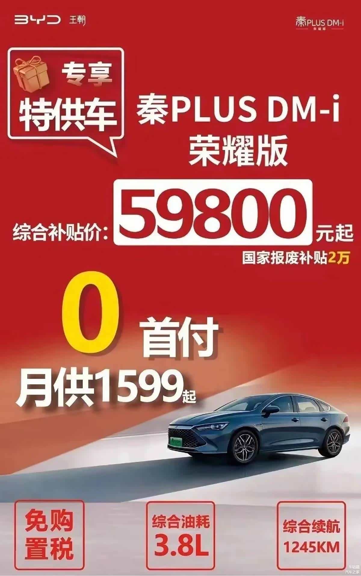 在宣传海报上我们也可以看到,所谓30周年限定版实际上就是加上了国补、省补、金融补贴等多重补贴政策,这些补贴加起来就差不多有2万元了,再结合秦PLUS DM-i本身7.98万元的起步价,可不就是5.98万元就能买了吗,所以比亚迪是明显做了一个噱头,打了一个“擦边球”。