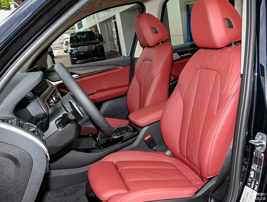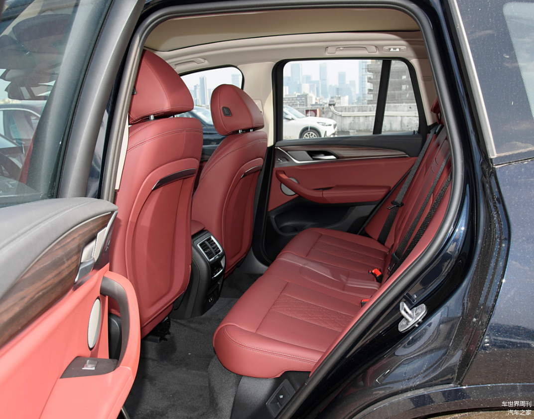 乘坐部分,宝马X3采用了仿皮材质包裹座椅,支持主副座椅腿托调节/腰部支撑、主副驾驶座电动调节、前排座椅加热、驾驶位电动座椅记忆等功能,对于这个级别的车型,舒适性是没什么问题的。