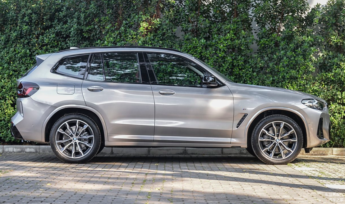 车身侧面,宝马X3车顶线条微微下压,腰线呈现上扬态势,配合前后隆起的轮眉和20英寸轮毂,展现出十足的力量感,而且,D柱还保留了霍氏拐角的经典造型装饰,整个视觉效果非常大气。