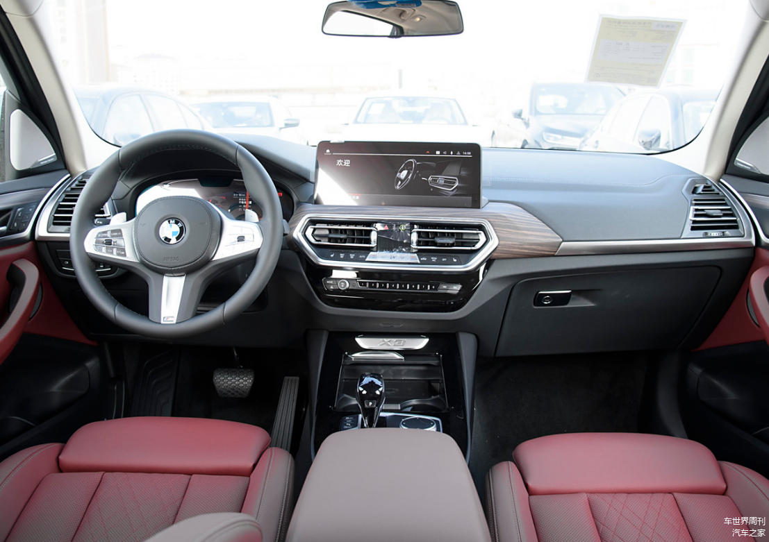 内饰部分,宝马X3采用了比较传统的设计,车内保留了不少物理按键,微微偏向驾驶员的设计,更加偏向运动。此外,中控区域采用双12.3英寸全液晶仪表+中控屏的设计,内置宝马iDrive车载智能系统,支持CarPlay/CarLife、语音识别控制、手机APP远程控制等常见功能,不过前排手机无线功能需要选装。