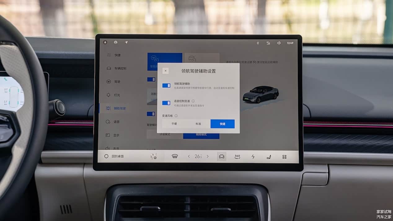 领克07 EM-P的NVH做得非常不错,即便是发动机启动后,车内能感受到的振动和噪音也微乎其微。不同的驾驶模式、能量回收等级和转向助理强度,会带给你截然不同的行驶品质。如果说领克03是偏向运动属性,那么领克07 EM-P则是在运动与家用之间进行了很好的兼顾。并且智驾版的领克07 EM-P目前已经能在江浙沪地区支持高速NOA高阶智能领航辅助了,由于我们体验的地点是北京,所以并未实际使用该功能。