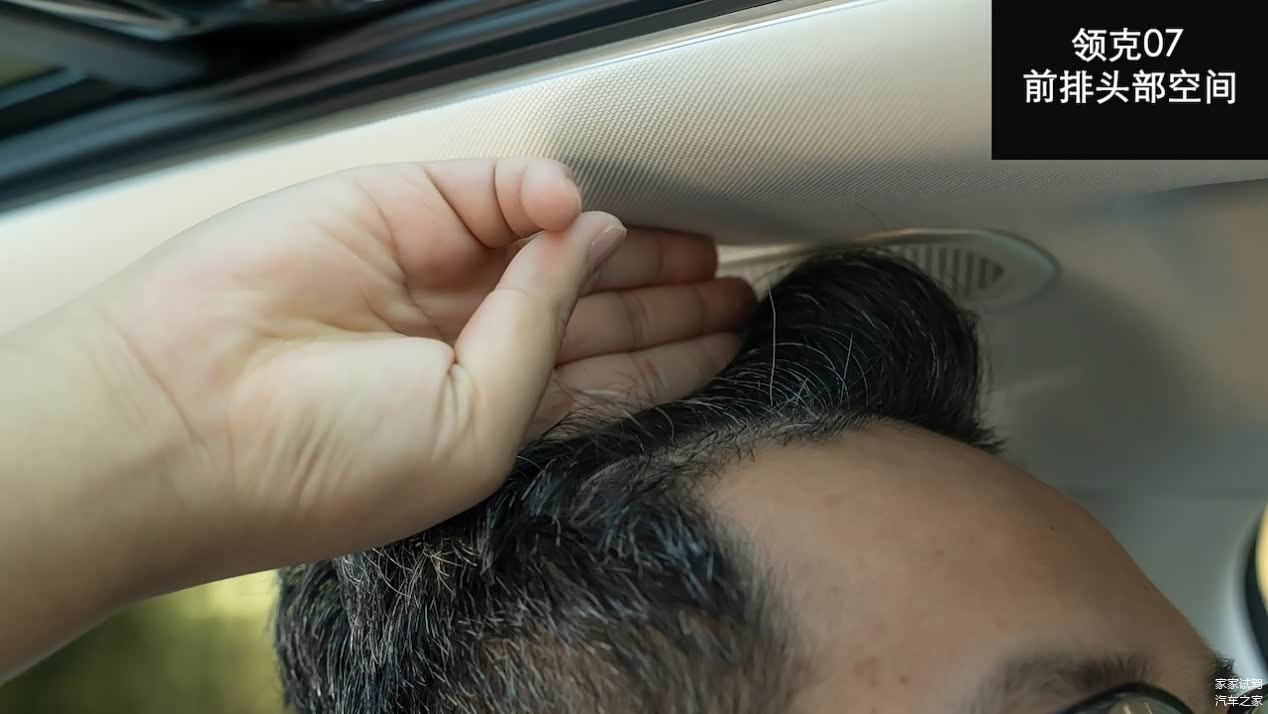 领克07 EM-P的前排座椅坐垫够长,填充物柔软,驾乘的舒适性更有保障。身高1米85的体验者坐进主驾驶,座椅调到最低,头部距离车顶有三指距离。