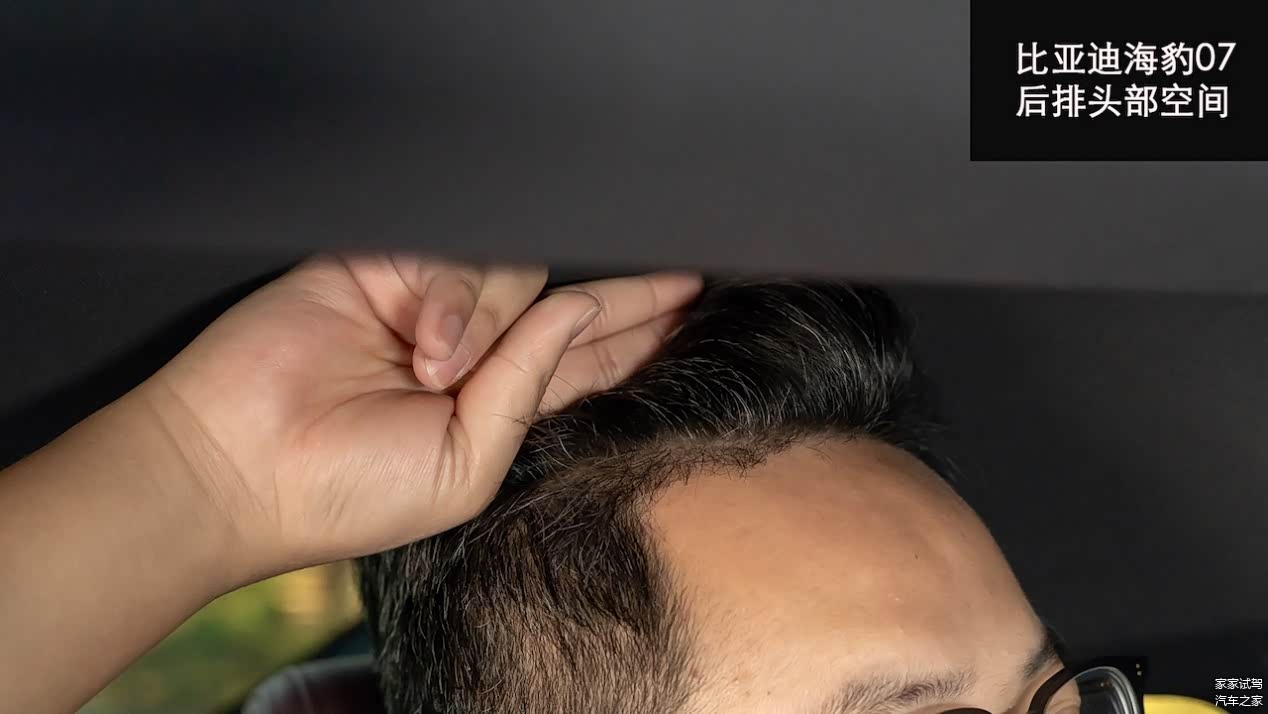 1米85的体验者坐进比亚迪海豹07DM-i后排,头部空间为两指,腿部空间则只有一拳。
