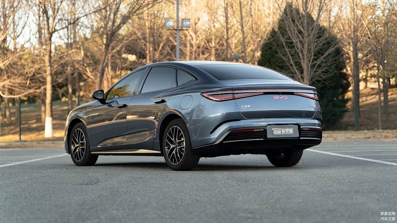 镀铬饰条贯穿的后尾灯组与后杠,虽然也是隐藏式排气设计,但比亚迪海豹07 DM-i的车尾设计明显和运动不沾边,饱满内敛是它传递给我们的视觉感受。