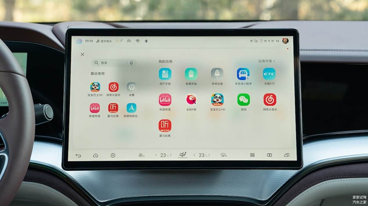 用车载大屏看电影是不少新能源车主的追求,领克07 EM-P自带“巨幕厅”功能,开启后,车窗自动关闭、空调和座椅按摩也会同步打开,享受2.5K中控屏与23个喇叭的哈曼卡顿音响带来的视听盛宴。
