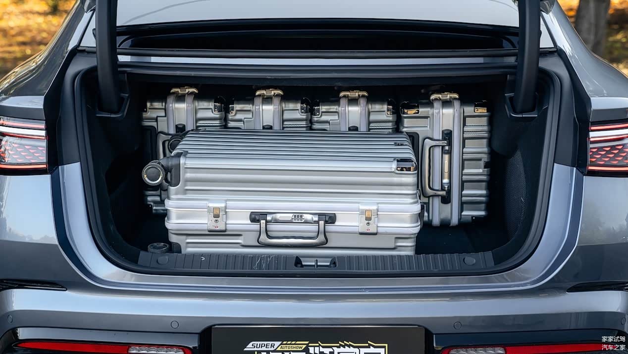 在行李厢的装载能力测试上,我们用的都是标准的20寸和24寸的拉杆箱。领克07 EM-P可以装下两个20寸的和两个24寸的拉杆箱。而比亚迪海豹07 DM-i能够装下四个20寸和一个24寸的拉杆箱。