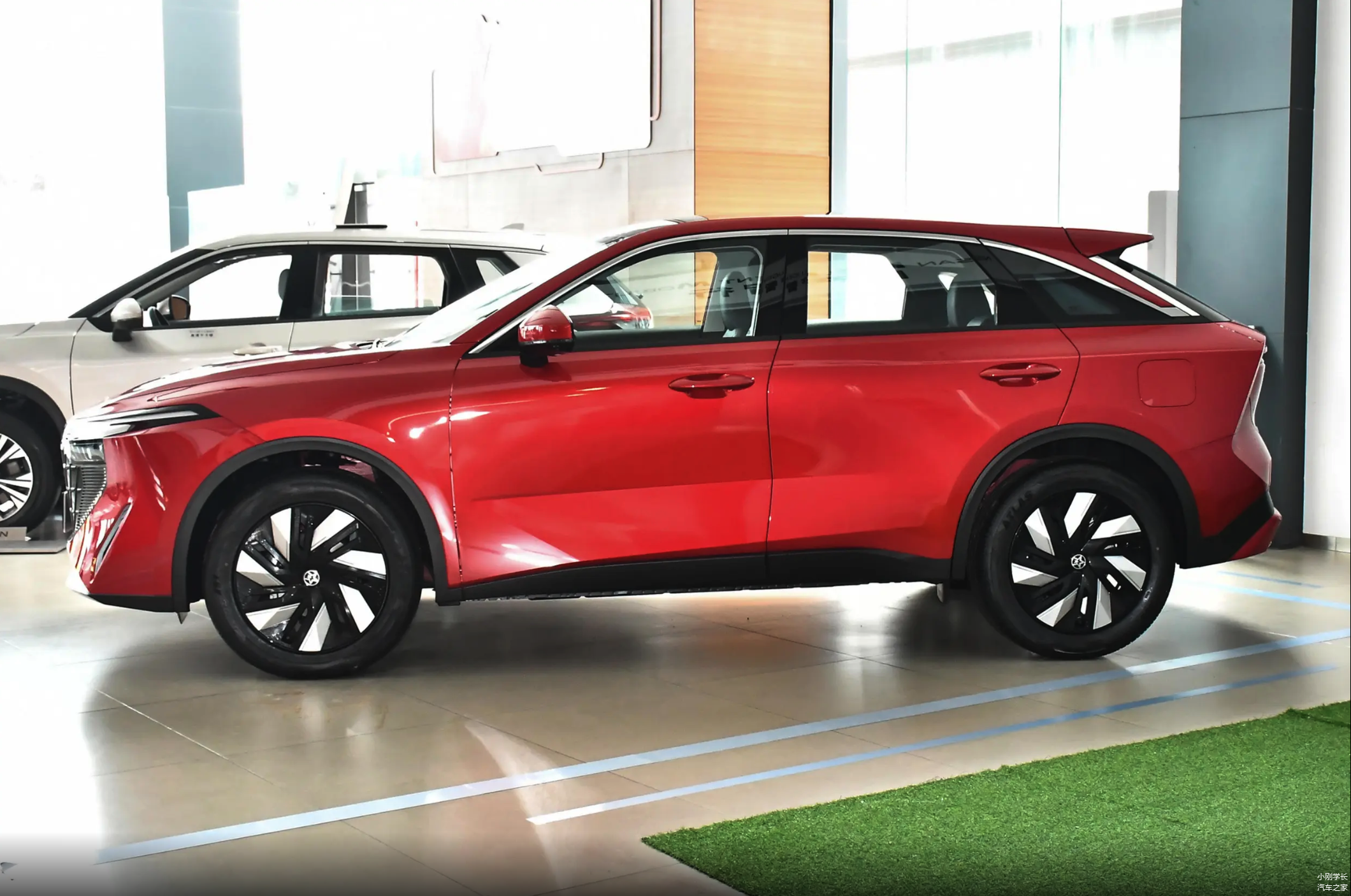侧面看整台车呈现低矮溜背设计,突出运动风格,启辰大V DD-i插混加特林风阻系数仅为0.279Cd,整车长宽高分别为4607mm/1917mm/1624mm,轴距为2700mm,属于主流紧凑型SUV的尺寸,在同级别车型里有优势。配色上提供了6种选择,其中两款为双色车身,最低配车型则有白色可选。