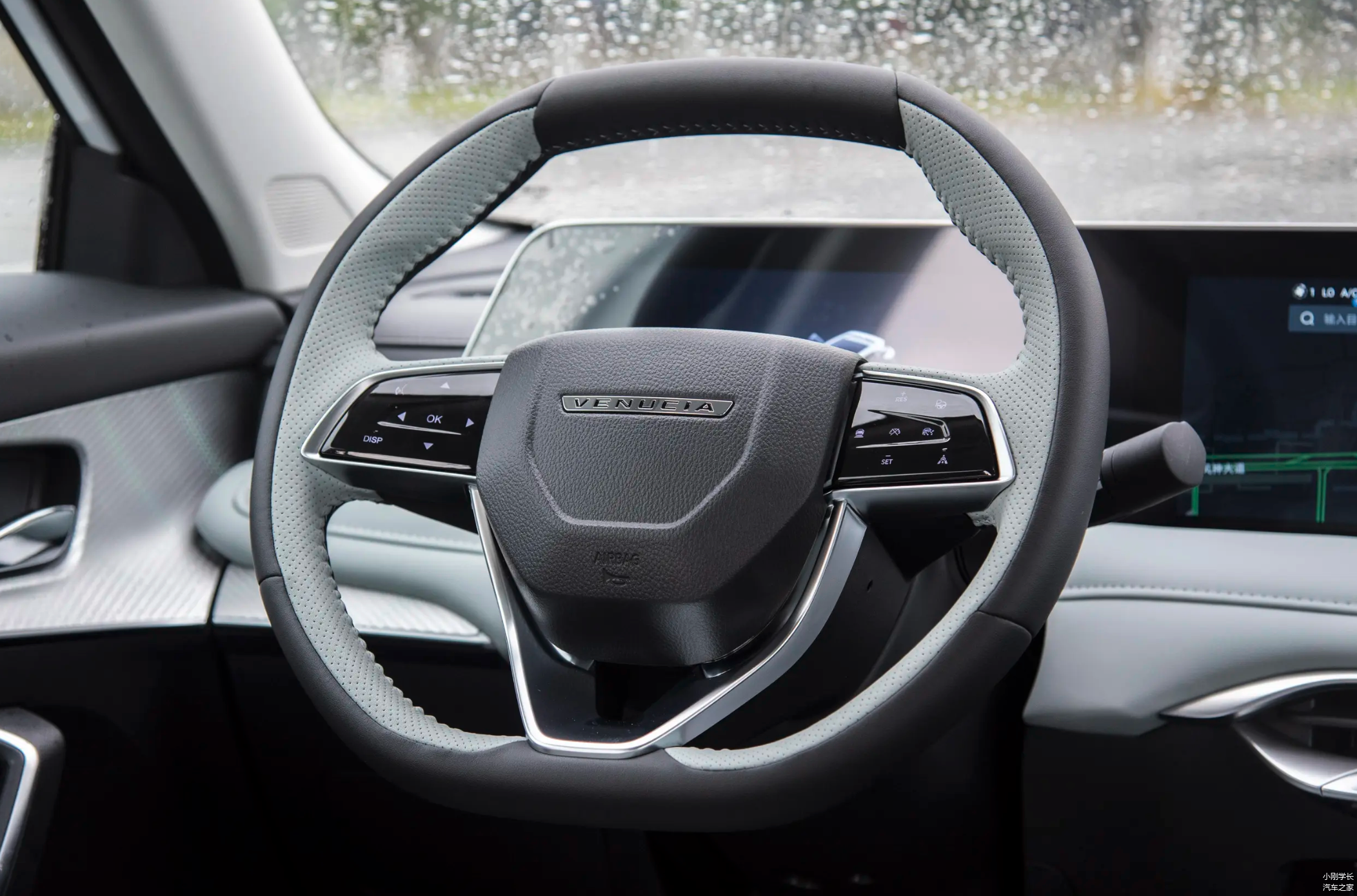 车厢采用内采用新能源车型主流的简约设计风格,除了最低配车型外,提供了三种配色选择(酷炫黑、黑色/红色、薄荷绿),整体分区明确,另外像手接触的大部分位置的饰面都采用软包材质,三幅式平底方向盘做了打孔处理,多功能按键为触摸设计,按下带有阻尼设计。12.3 英寸仪表盘显示信息丰富,车辆驾驶信息一目了然。