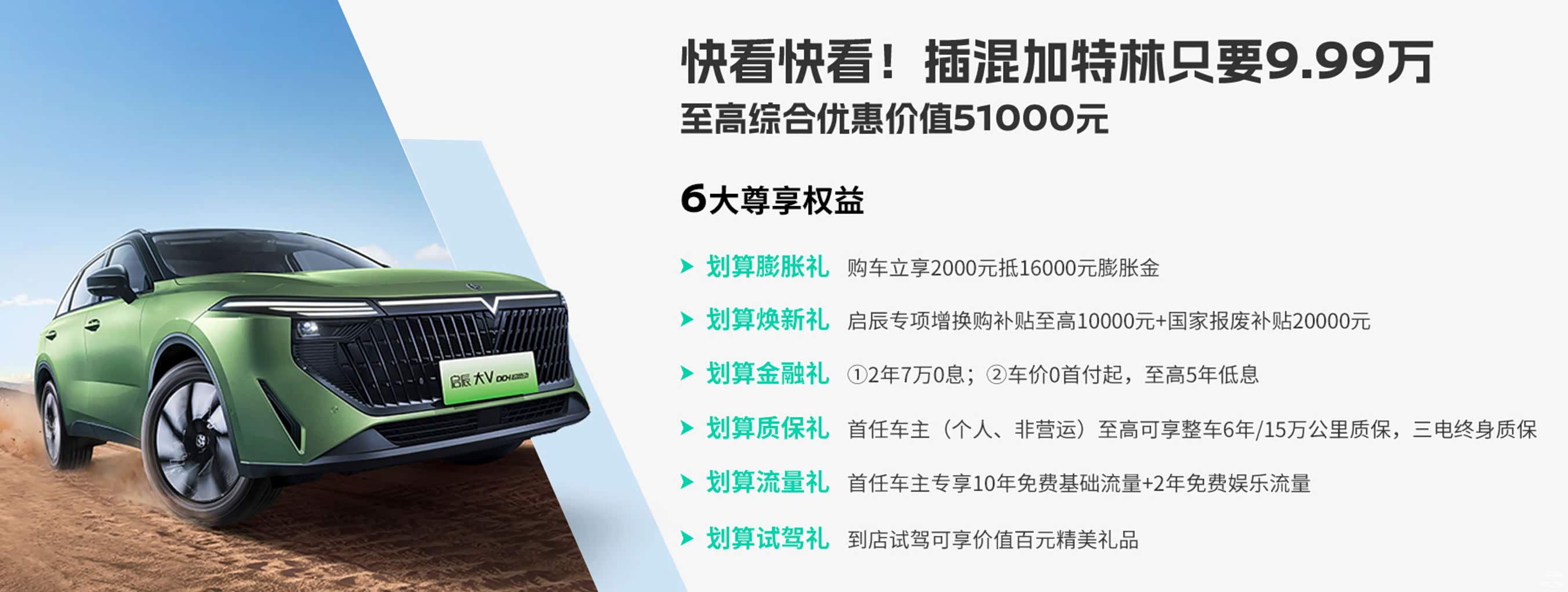 总结:综合体验下来,启辰大 V DD-i 插混加特林这台车的动力、空间、性价比都优势,10 多万预算,消费者既要又要的选车需求来看,这台车还是均衡的选择的,加上有不错的优惠幅度,这对于年底想要购车的朋友来说有不错吸引力,感兴趣的可以到店去店里试驾体验下。