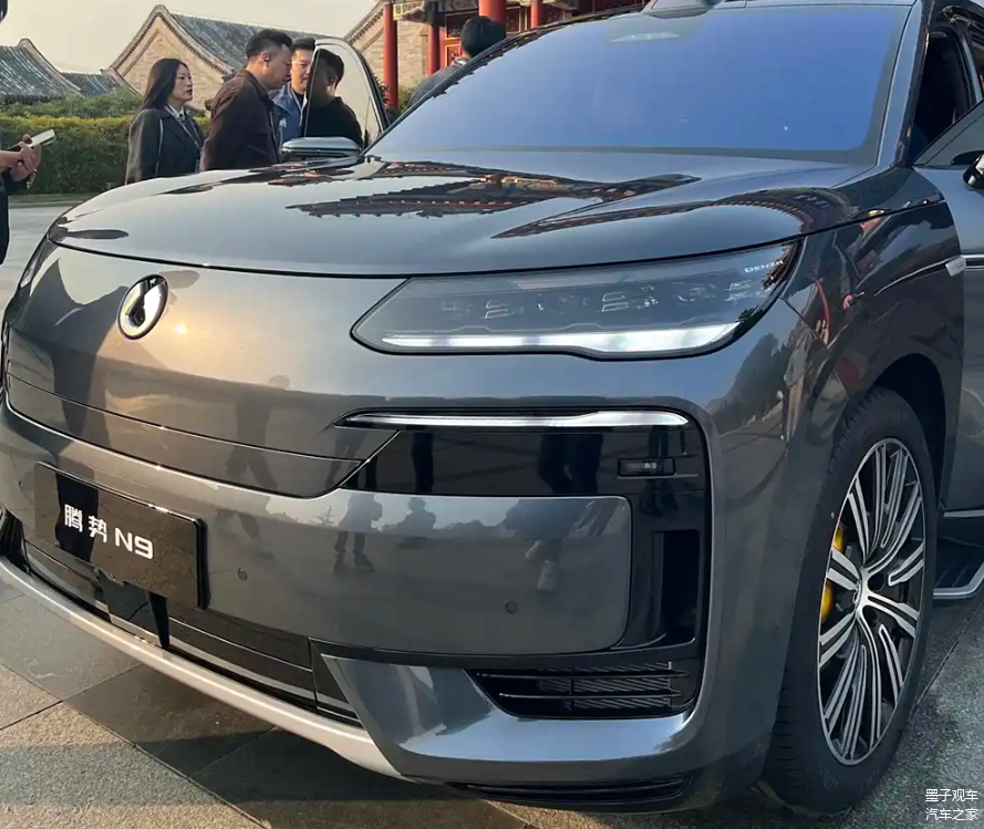 首先从尺寸来看就比问界M9大上一圈,毕竟这个级别的车气势非常重要。具体来看,腾势N9长宽高分别为5258/2030/1830mm,轴距为3125mm,在气场上无比高大、魁梧,即便和宝马X7和奔驰GLS相比也不落下风。从实拍图来看,腾势N9采用了家族化的“日冕前脸”,封闭式进气格栅搭配扁平狭长的大灯组,看上去非常饱满,同时车头下方的“C”字形进气口造型夸张,上方还配备了LED灯带作为补充,