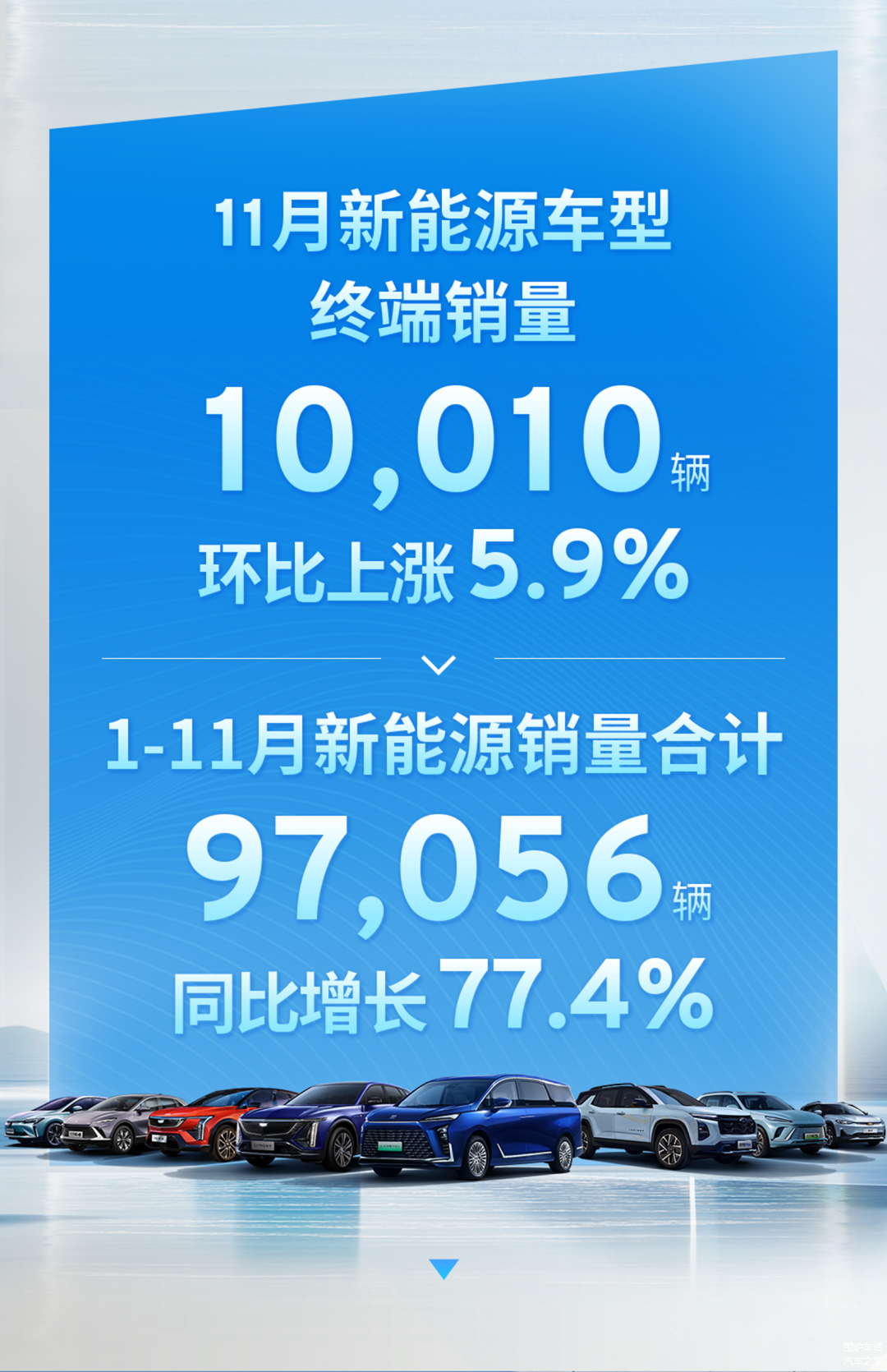 在此大环境之下,上汽通用汽车近几个月的销量表现算得上可圈可点。在新能源赛道,上汽通用汽车11月终端销量10010辆,环比上涨5.9%。1-11月新能源车型销量合计97056台,同比增长77.4%。