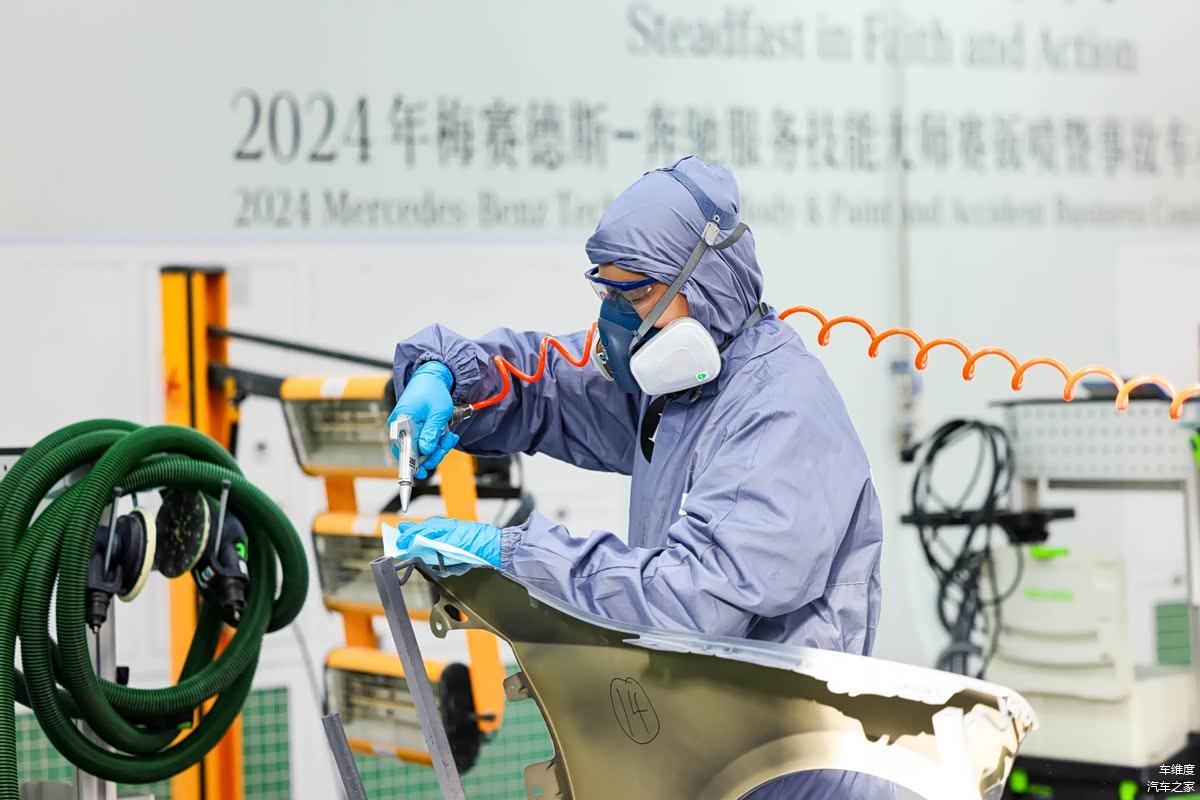 作为梅赛德斯-奔驰全球体系内规模与规格双高的年度重磅赛事,服务技能大师赛自2008年首次引入中国市场以来,在16年的传承与创新历程中扮演着极为关键的角色。它通过以赛代练、以赛促学的独特模式,源源不断地为行业培养出深耕标准、与时俱进的本土服务人才。今年的赛事聚焦客户服务领域中常见的“钣金喷漆”领域,对精准检测、外观修复、喷涂流程、车间管理以及客户沟通等多个关键环节的标准化操作与专业工具应用展开深入且系统的考察,以360度的评估方式全面考量一线服务人员在实际用车场景下的标准化应用能力与团队协作水平,强力驱动一线服务人员将 “奔驰标准” 融入每一处服务细节,实现服务流程的规范化与技术实力的稳固夯实,为客户用车打造全方位的安心保障,也为整个汽车服务行业树立起人才培养与服务提升的新标杆,在汽车服务领域掀起创新发展的新浪潮。