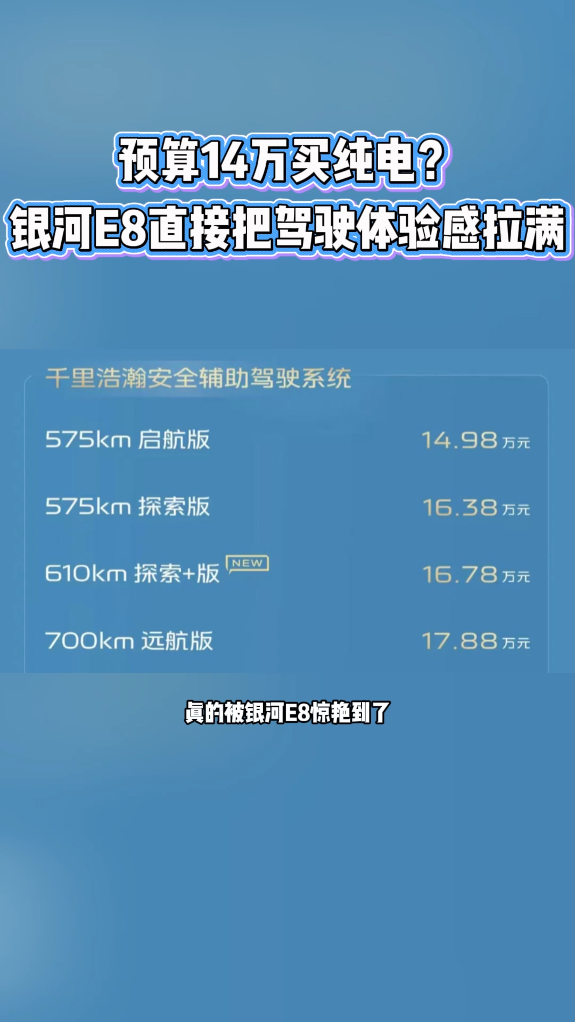 预算14万买纯电?银河E8直接把驾驶体验感拉满