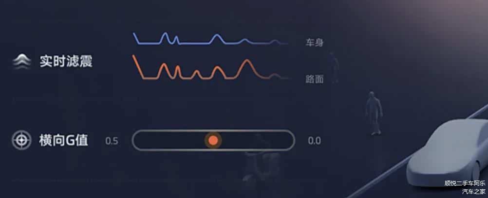 此外,灵蜥底盘可以直接查看车身路面实时滤震、横向G值等,可通过方向盘右侧滚轮进入仪表卡片编辑页面,选择“车身姿态”卡片并显示。在进入车辆设置,选择驾驶屏卡片,可自定义仪表卡片为“车身姿态”。值得注意的是,该功能适用于配备空气悬架车型。