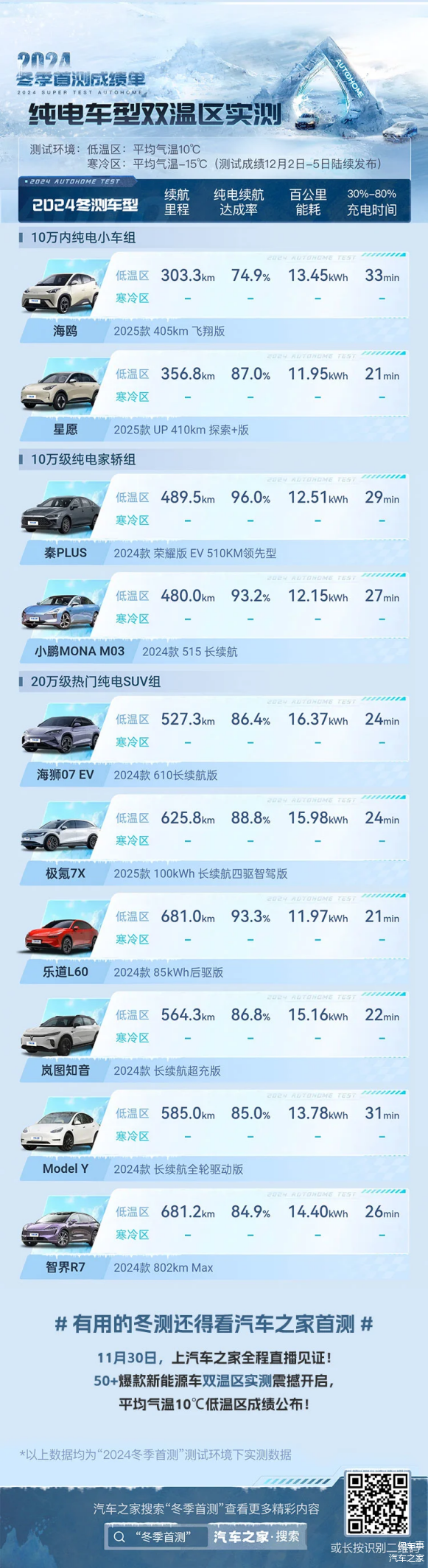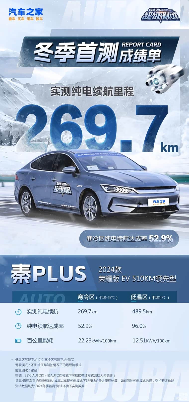 凛冬将至,对于新能源车型来说,冬季续航表现是车主们最为关心的话题了。这几天,汽车之家在举办2024冬测活动,测试结果也新鲜出炉了,比亚迪秦家族车型在低温环境下的优秀续航达成引起了很大的关注。