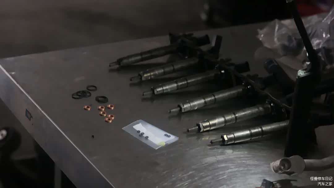喷油嘴上面的密封圈也准备好了,等待更换。注意:柴油发动机喷油嘴密封圈,必须使用原厂进口配件。