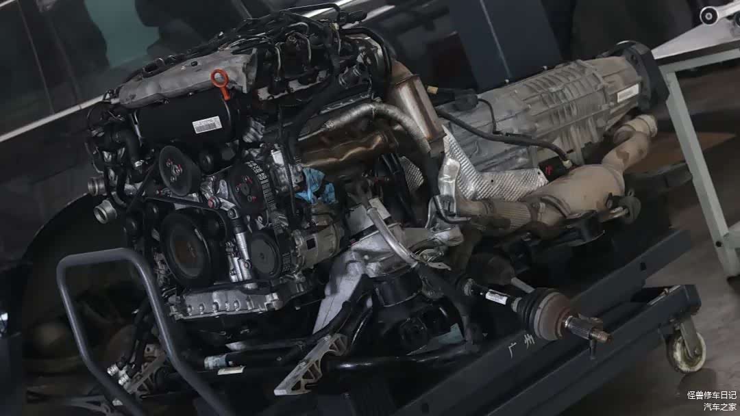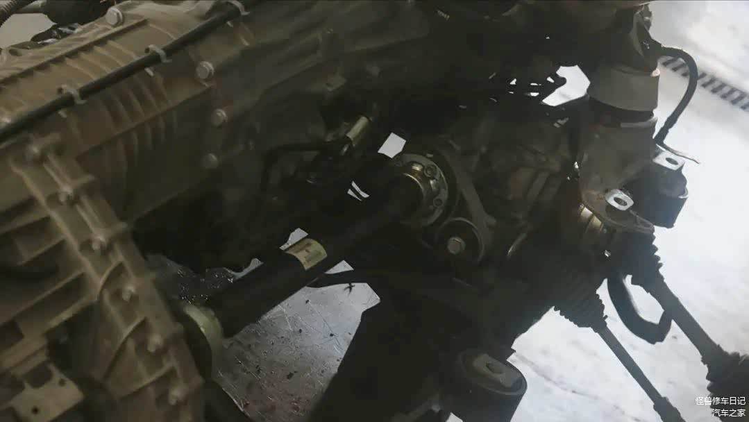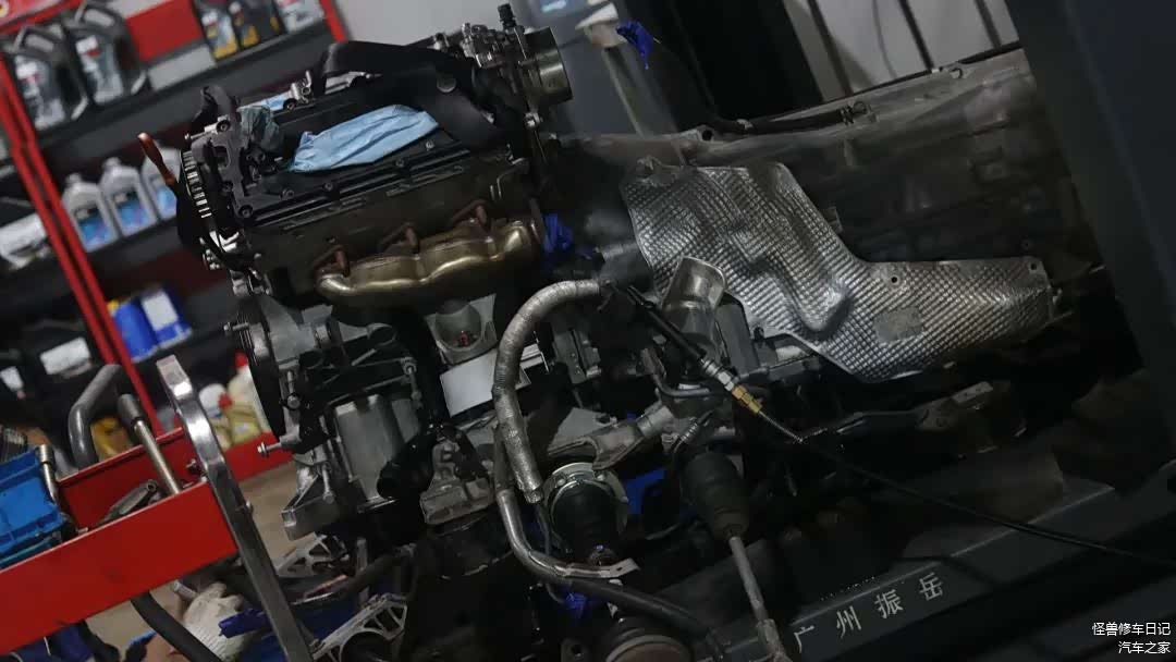 因为漏油比较严重,所以直接把发动机抬下来了,变速箱、元宝梁一起拆下来的。