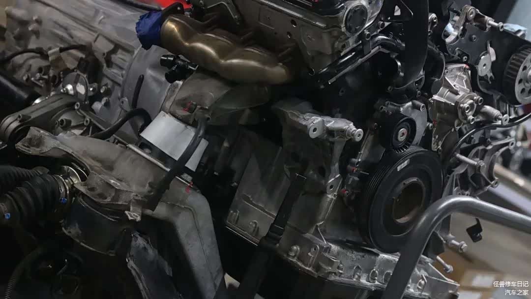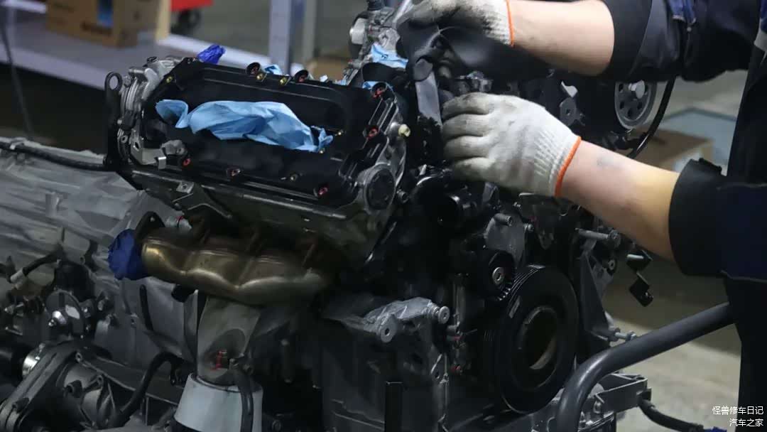 一些部件回装就不多介绍了,发动机、变速箱开始合体。