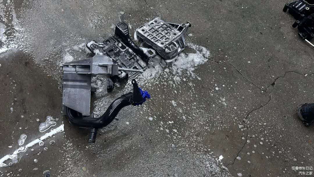 拆掉的各种附属件,全是油泥,基本上看不清庐山真面目的。这必须要清洁干净,不然没法继续用啊。