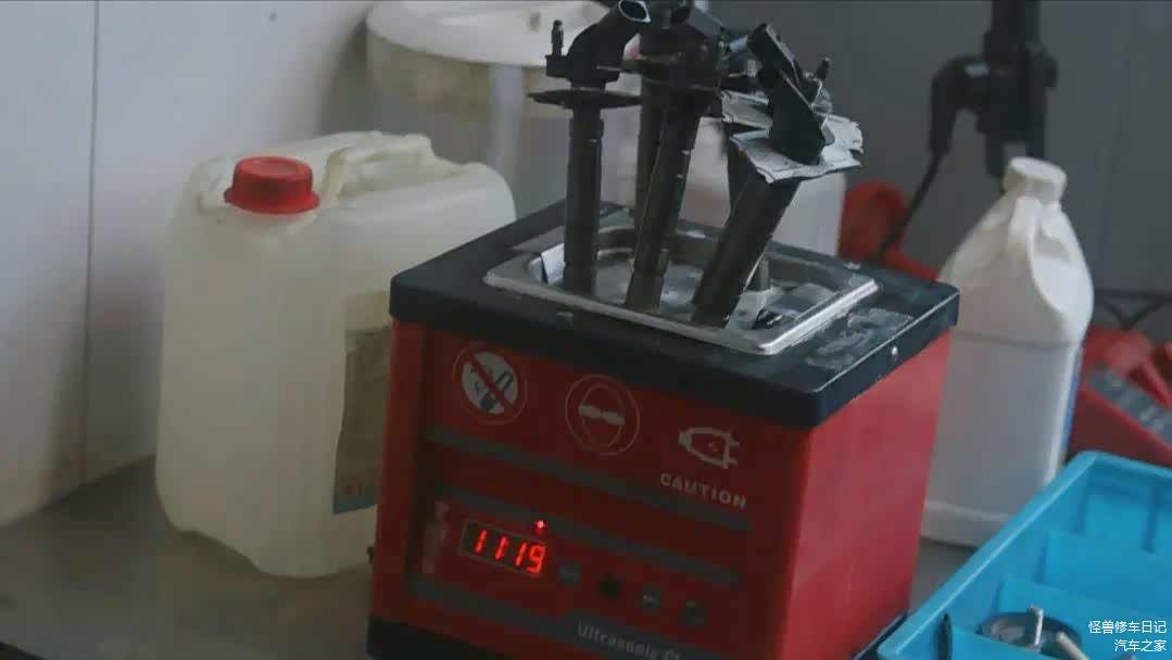 拆掉的喷油嘴,正在做超声波清洗。