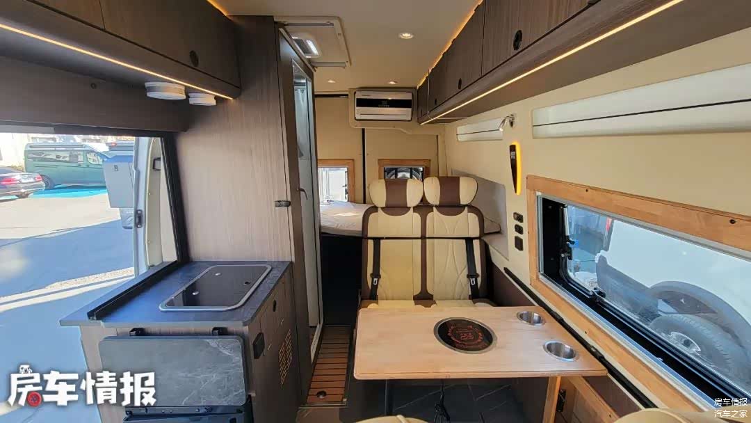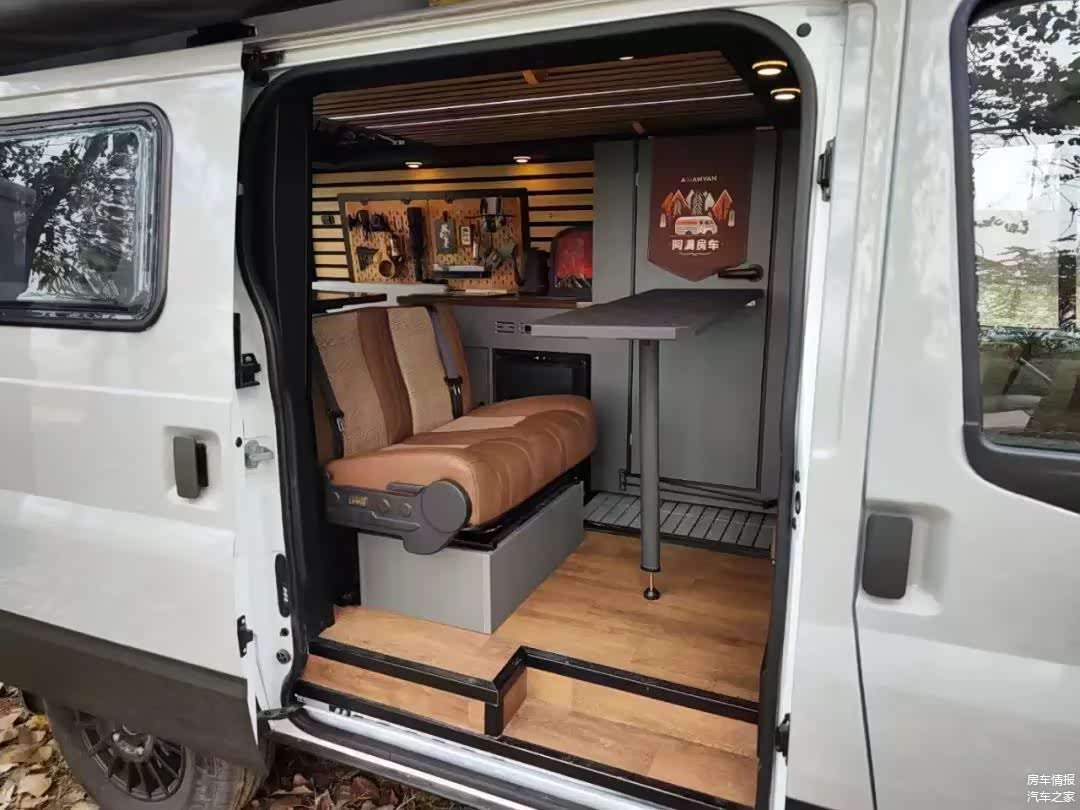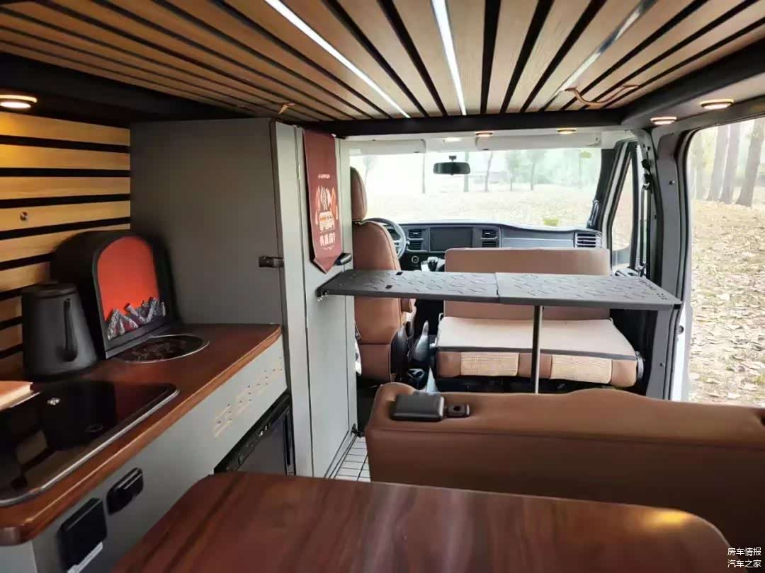 除了这种标准布局以外,这款车还可以接受个性化定制,比如下图这种更有Vanlife风格的设计风格,就是全新下线的一台客户定制化车型。