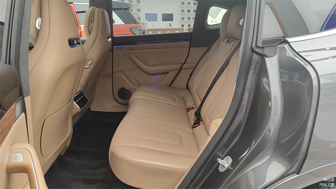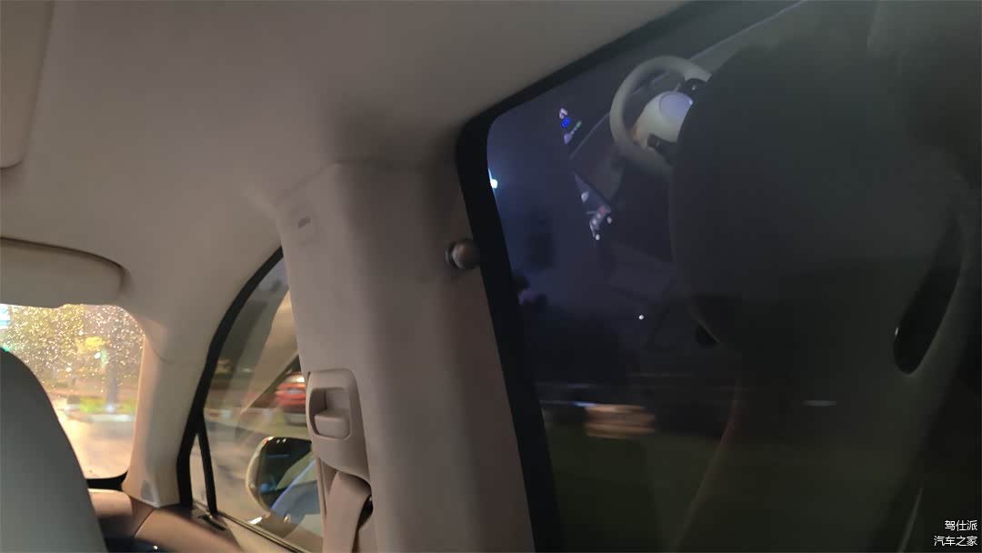 车里还有一些比较考究的小细节,譬如前排的安全带依然保留了固定高度的上下调节;又譬如前排座椅的背部留有带供电口的安装孔,用来支持鸿蒙平板的扩展;B柱上带有一个很精致的镀铬挂钩,用来临时挂东西,同时尺寸也比较小,防止乘员进出车厢时磕到挂钩。