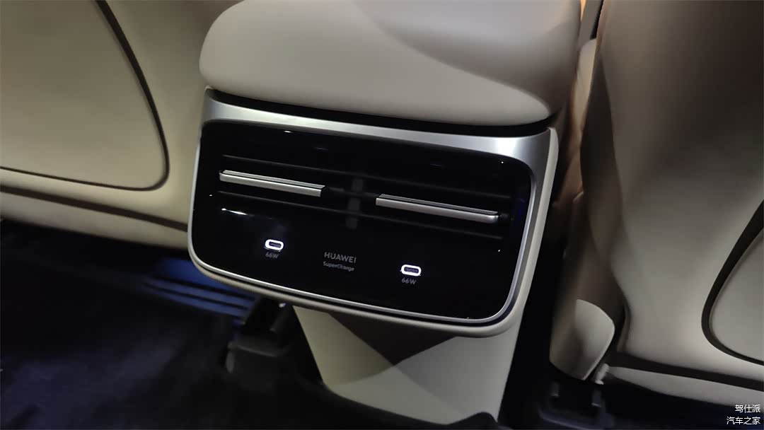 后排的两个USB口都是66W的高功率接口,而且带有独立的背光,方便夜晚插拔。美中不足的地方在于都是Type-C口,对于规格比较老、或者相对廉价的电子设备来说就没那么友好了。