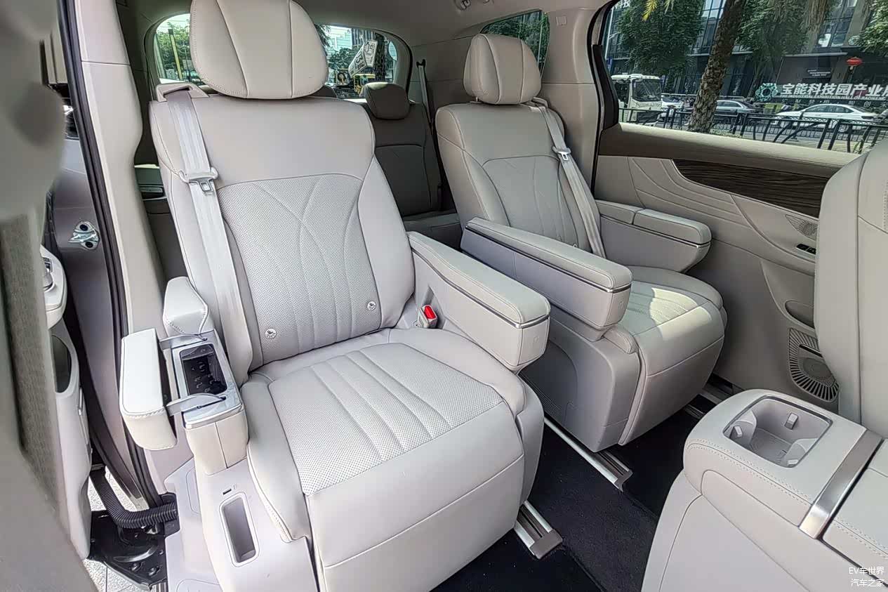 车内全系采用“2+2+3”七座布局,得益于MPV专属平台底盘布局,拥有395mm超低地台高度,厢纵高1045mm。