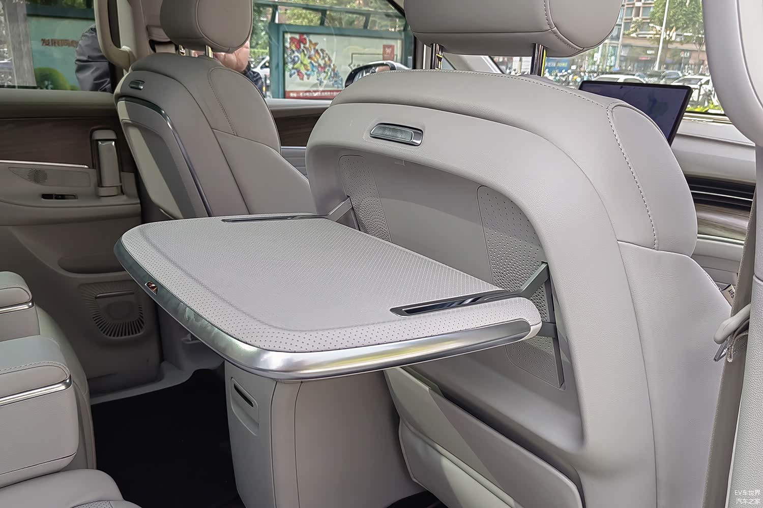 二排航空座椅的坐垫长度达到530mm,并支持电动调节、加热、通风和按摩功能,支持69°超大角度电动调节靠背和64°黄金减压角度电动调节腿托。同时前排座椅椅背还设置了两个独立可打开小桌板,方便了办公和娱乐。