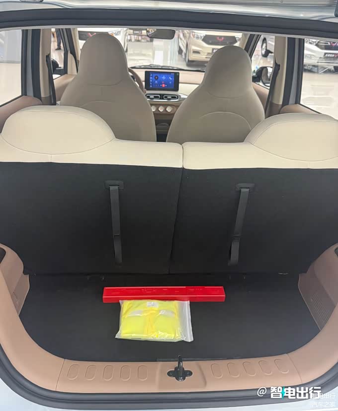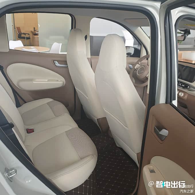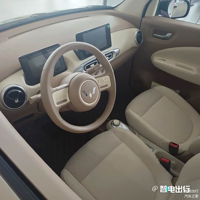新五菱宏光MINIEV配备7英寸彩色仪表、8英寸悬浮中控屏、多功能妙控方向盘、“方糖”造型智能钥匙,支持无感启动和靠近解锁尾门等。车内采用贯通式主副驾中央通道,全车提供19处储物空间,后备箱常规容积123L,后排座椅放倒后可扩展至745L,两侧出风口改为圆形,升级电子手刹,带高清倒车影像+后倒车雷达。