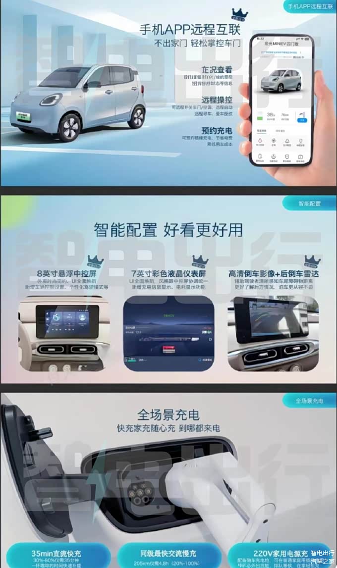 新宏光MINIEV采用全新架构+神炼电池,提供奶茶咖、霓虹蓝和澄澈绿3种配色,车长较现款马卡龙增加19.2厘米,轴距增加18厘米,支持手机APP远程互联,还搭载同级最快交流慢充,新增ESC车身稳定系统、4种驾驶模式和3档能量回收可调。