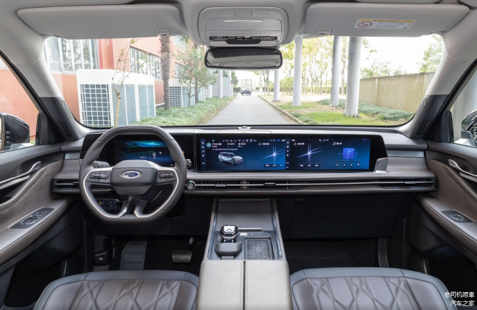 来到车内,2025款福特锐界L依旧是我们熟悉的设计和布局,车内采用12.3英寸全液晶仪表盘+27英寸的4K中控屏,同时还有HUD抬头显示系统,其车机内置SYNC+2.0智行互联系统,这套车机比起很多新能源车来说显然有所逊色,但是在传统合资车型中还算是可以,毕竟2025款福特锐界L的屏幕够大也够多,还是能够提供不错的科技氛围的。