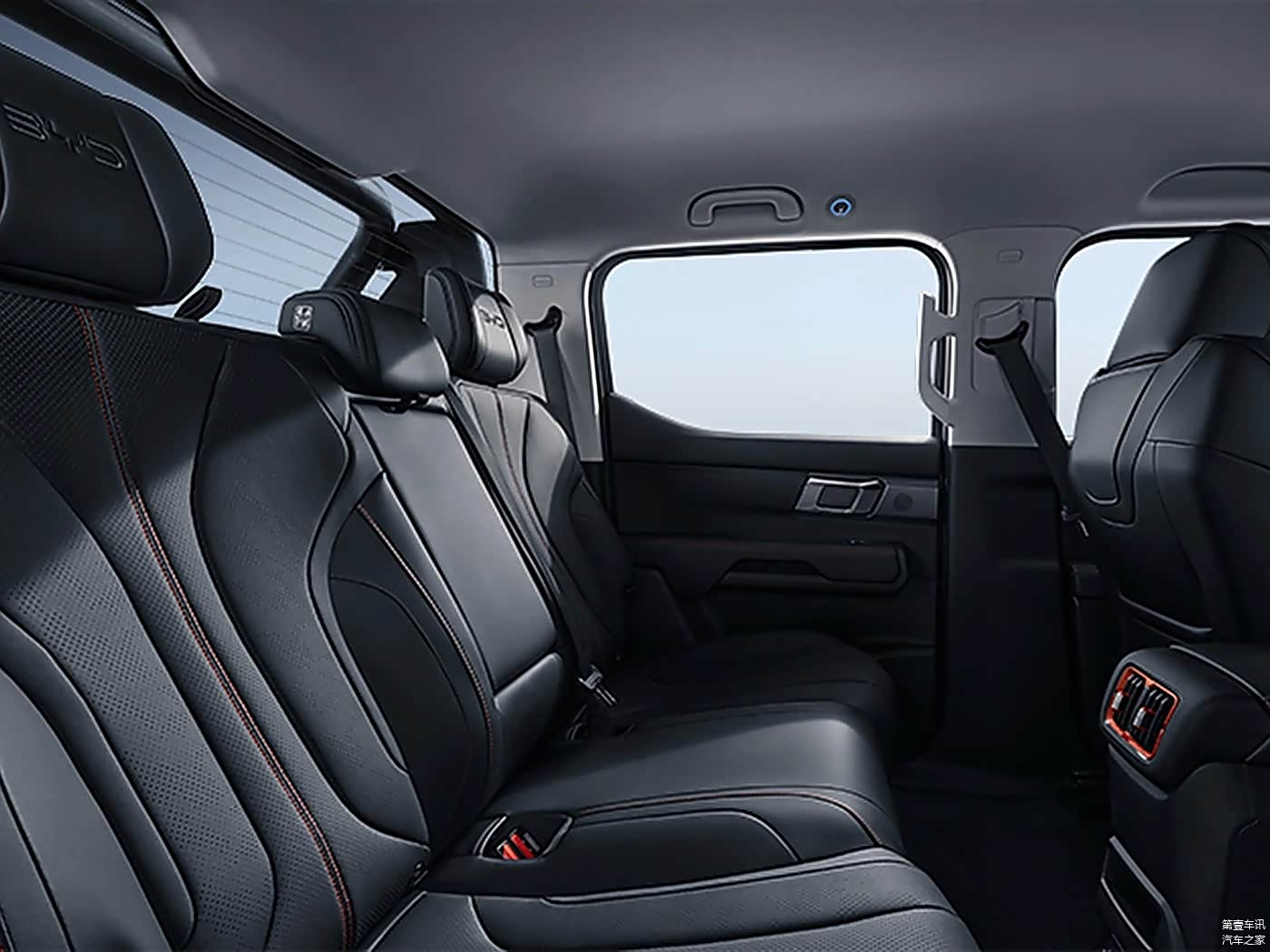 在内饰方面,Shark 6与豹5的设计风格高度一致。这款电子挡杆配备了升降功能,并配备了一个10.25英寸的液晶仪表盘、一个12.8英寸的中控显示屏和一个12英寸的HUD显示屏。从功能角度分析,这款设备兼容CarPlay、Andriod Auto、540度环影、车内KTV和智能语音助手等多种功能,种类非常丰富。为了给乘客带来更为便捷的充电体验,前排地面还特意安装了一个50W的手机无线充电面板。