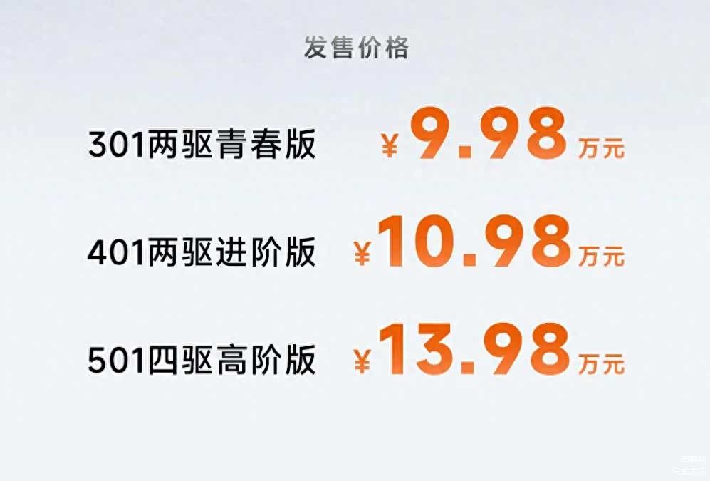 我们再来看两驱进阶版和四驱版,价格上来看,501四驱高阶版售价在13.98万,比两驱进阶版多出了整整3万元,对于这个价格区间的车来说,已经算是比较大的差价了,那么配置上有什么差别呢?