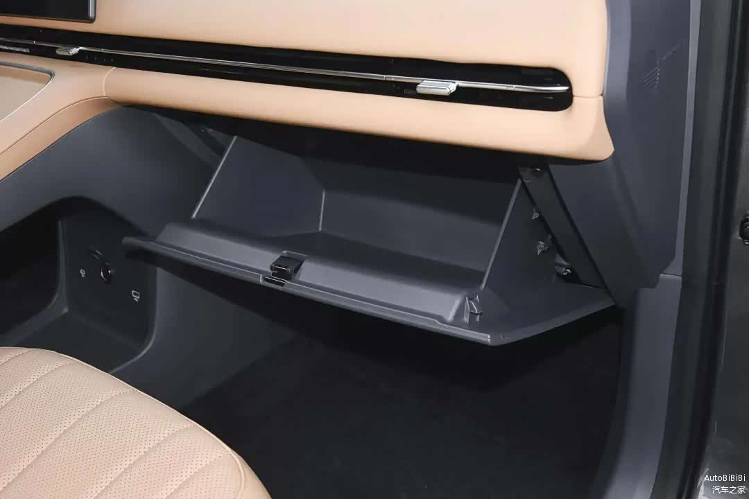 另外还有两处细节设计值得夸一夸:一个是中央扶手的杯架位置中间有一处不易发现的小洞,这不是装配失误,而是给充电线预留的孔位,如果你的手机没有无线充电功能,就可以通过这个孔直接把线穿到位于扶手箱下方镂空位置的充电接口,避免了从外侧绕线的尴尬。另一处细节则是副驾驶位的手套箱打开后,可以将中间的隐藏式挂钩翻折出来,再关上之后就成了一个可以悬挂汤汤水水的挂钩了。