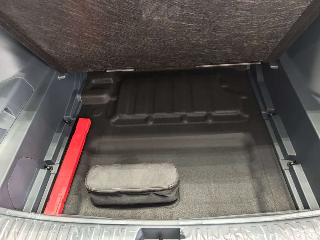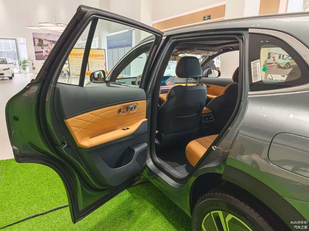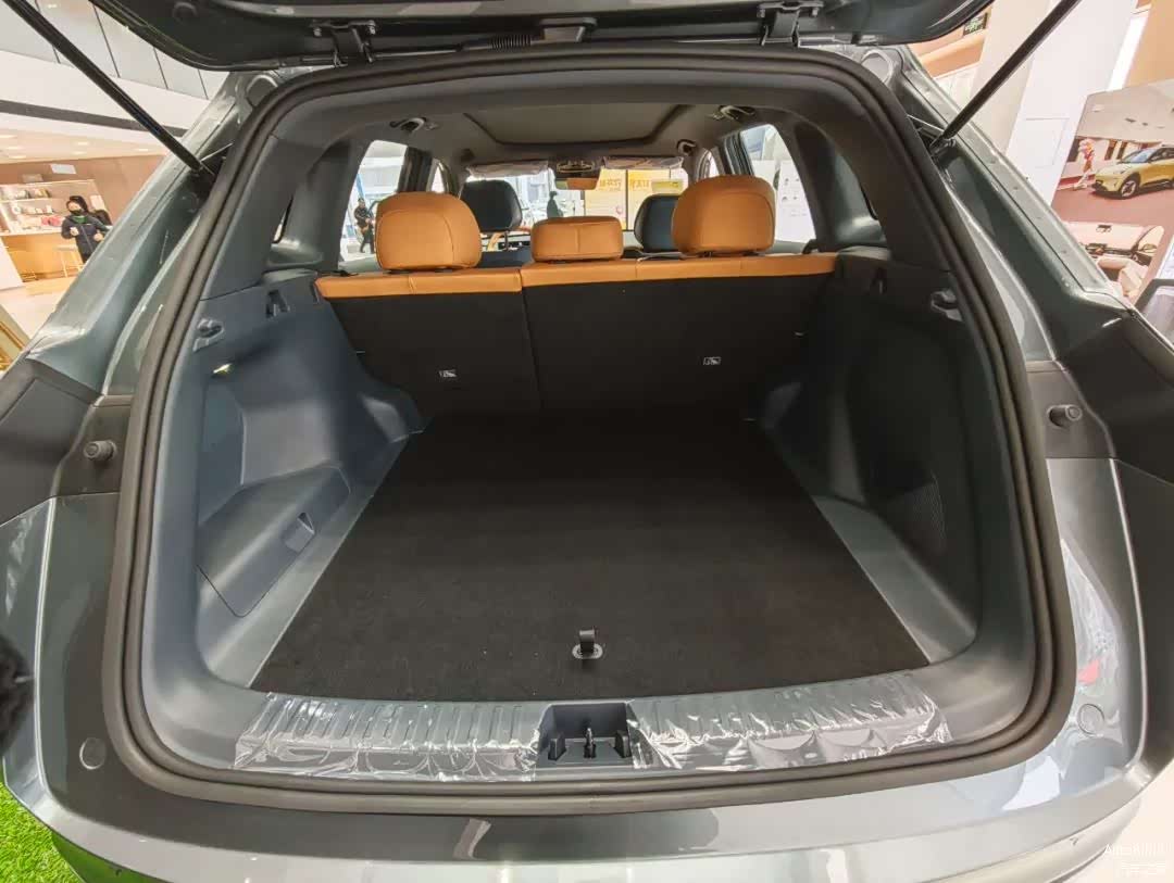 展车是一台定价11.28万的120km入门款车型。我们先看后备箱,开口大小、开口高度、进深和平整度都没有问题,打开盖板以后下面有一片面积够大但是有点浅的空间,聊胜于无吧。星舰7虽然支持3.3kW外放电,但是并没有在后备箱直接配有电源接口,如果要在露营的时候使用外放电功能,还得额外买一个转接器,一两百块钱是省不了了。还有一个特别需要注意的是,55km和120km两个入门款车型都没有电尾门,而这台车的手动尾门特别特别的重,所以我强烈不建议大家选择这俩入门款,不然光是每次尾门的开关就足够你烦的。