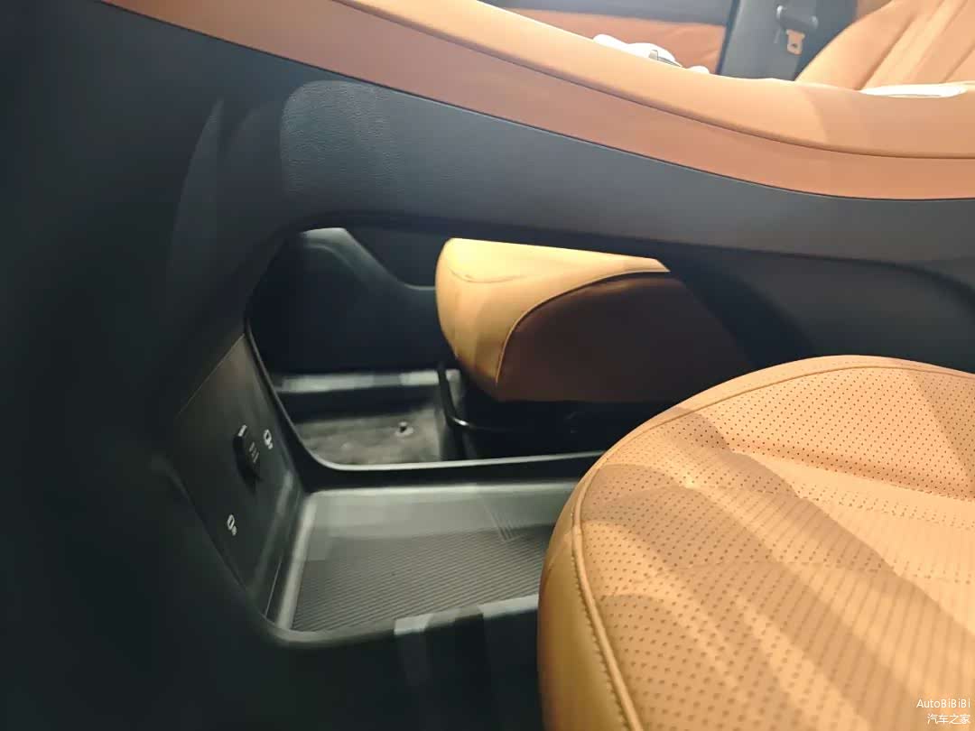 后排的腿部空间和银河E5差不多,座椅是仿皮材料,手感还行,后排虽然有打孔但是没有通风加热功能,前排座椅在次顶配开始才有通风加热,顶配则还有按摩功能。座椅的填充是相对比较厚实的那种,包裹性不强但支撑性足够,坐垫长度勉强可以覆盖到我大腿关节处,如果是1米7以上个头的人坐在后排估计大腿就有一部分是悬空的了。后排中间的位置坐起来相对会比两边更高更硬一点,偶尔临时应急问题不大。门板上手臂经常接触到的位置覆盖了仿皮,下方是硬塑料,上方是硬搪塑,机械门把手在这个价位也是保险又省成本的选择。后排有空调出风口,下方充电A口、C口和放手机的位置都有,没有在这种实用配置上做减法要给个好评。