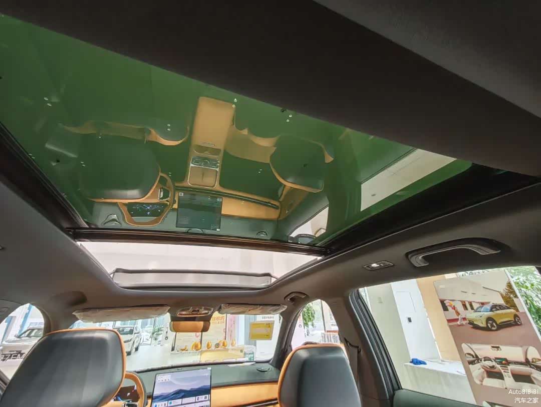 后排看完准备下车的时候我抬头一看,发现了一个“小惊喜”,如今不管是新势力还是传统车厂都喜欢用全景天幕,然而星舰7上居然配的是大面积可开启全景天窗。我个人是不太喜欢天窗的,一方面是利用率不高,另一方面是后期容易出现疏水管堵塞车内渗水的问题。但相信还是有不少消费者喜欢能打开的天窗,这个配置只能说见仁见智了。另一个比较可惜的地方是后排座椅角度不可调,其实哪怕像银河E5一样增加个简单的机械调节也行,这会大大提高后排乘客的舒适性。